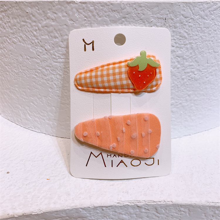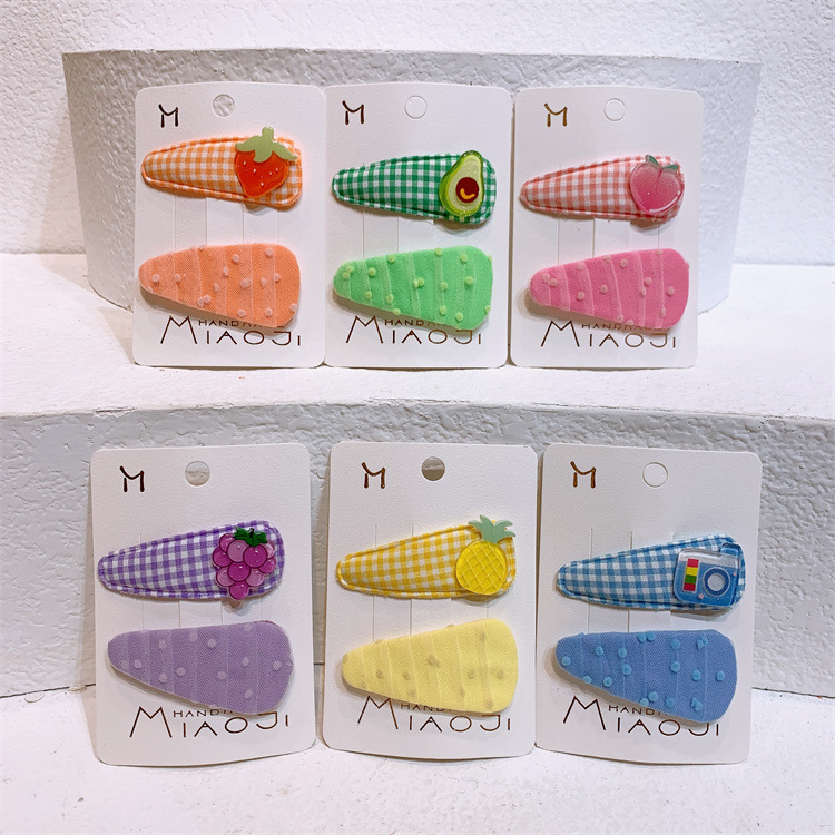 봄 새로운 어린이 파인애플 과일 격자 무늬 머리핀 소녀의 깨진 머리 앞머리 BB 클립 아기의 쌍 머리핀 모자