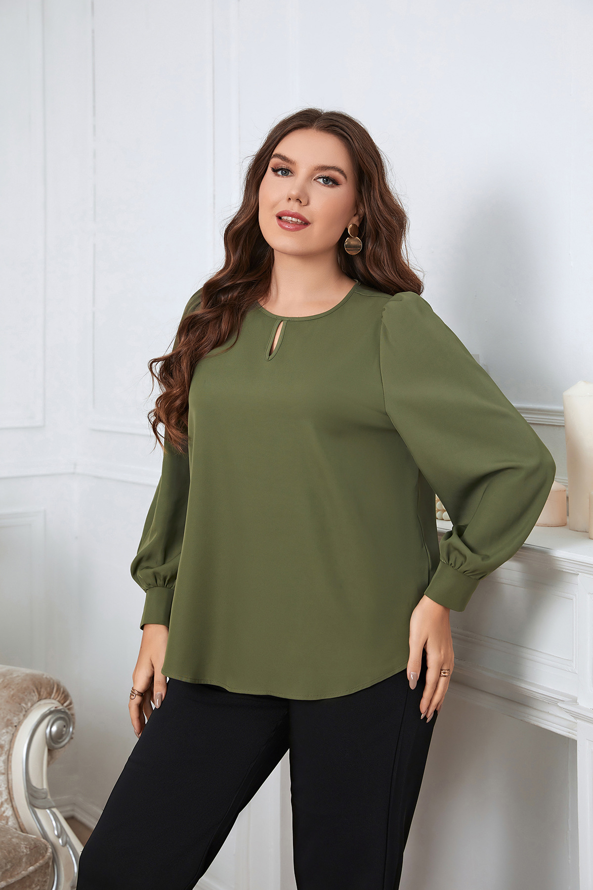 유럽과 미국의 대외 무역 아마존 AliExpress 폭발 이른 봄 라운드 넥 긴 소매 녹색 플러스 사이즈 숙녀 셔츠스토어 가기