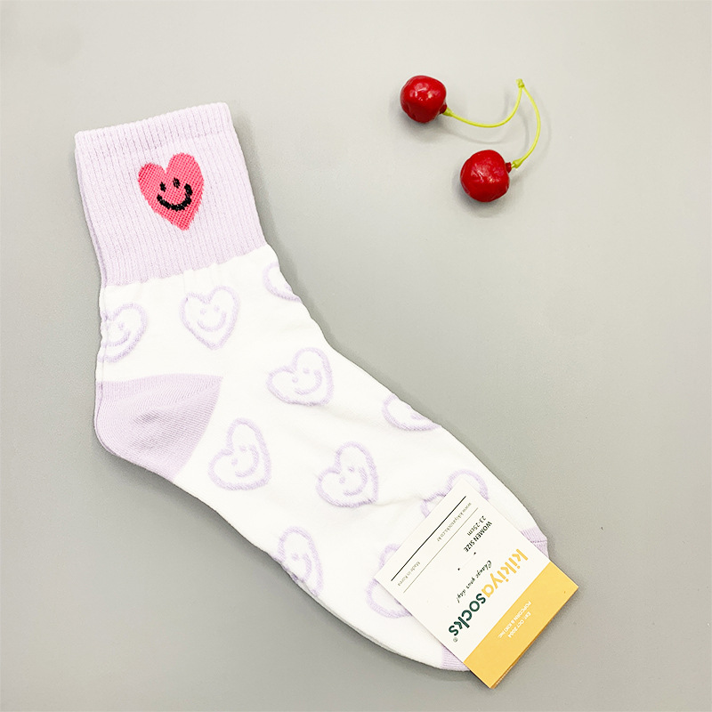 한국 동대문 2023 봄과 여름 새로운 색상 매칭 곰 스마일 사랑 한국 여성 양말스토어 가기