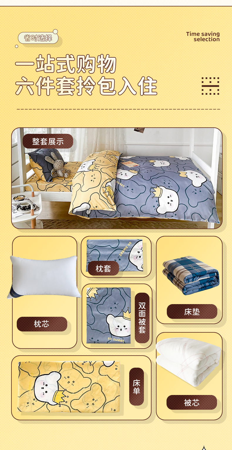 학생 기숙사 6종 세트 겨울용 프린트 이불 커버 이불 세트 싱글 침구 90 매트리스 이층침대용스토어 가기