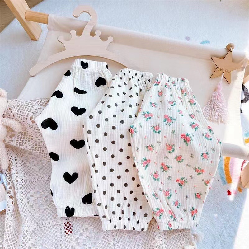 아기 소녀의 여름 바지 얇은 모기 방지 바지 면 워터 마크 느슨한 어린이 만능 하렘 바지