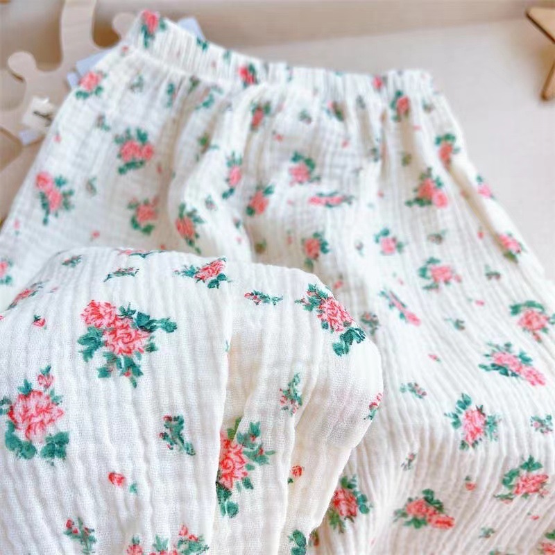 女宝宝婴幼儿夏季长裤薄款防蚊裤棉纱水印宽松小童个月百搭哈伦裤