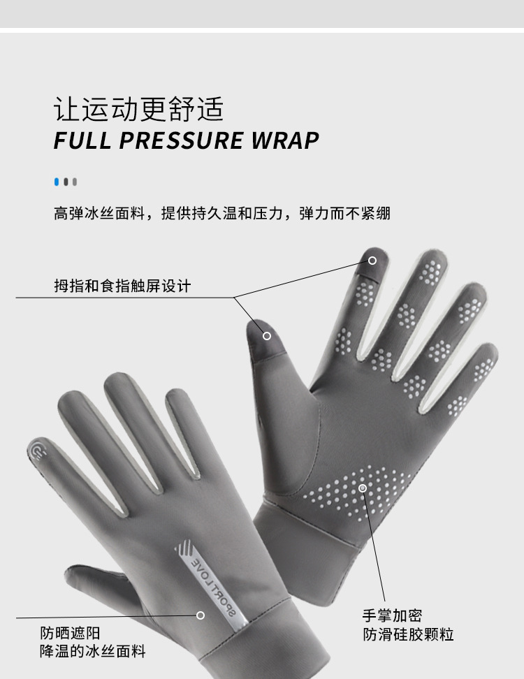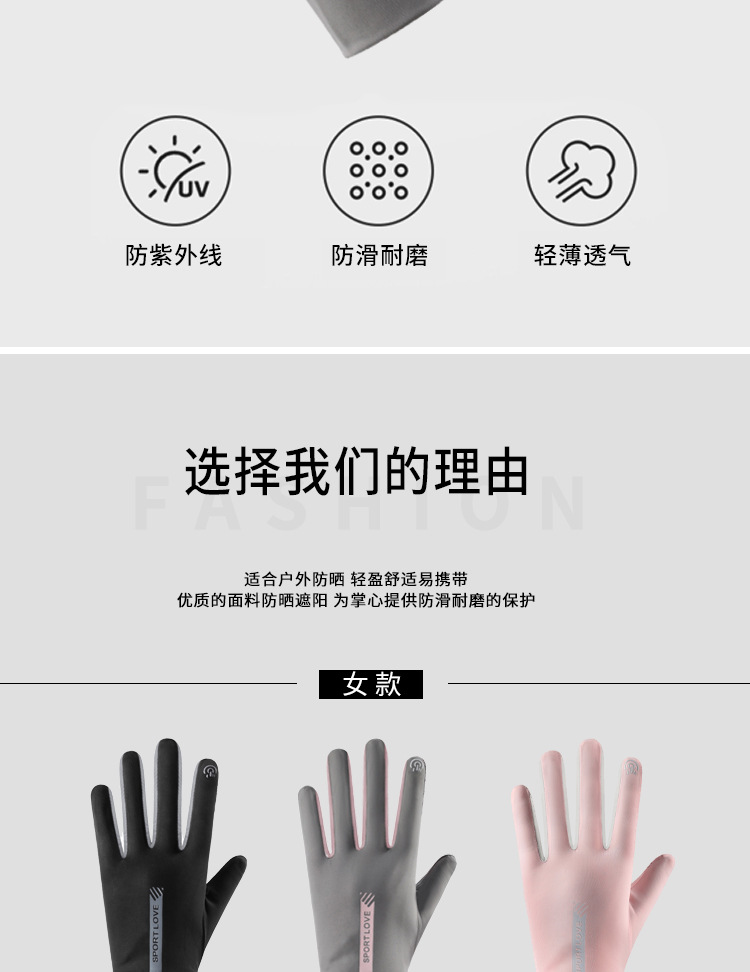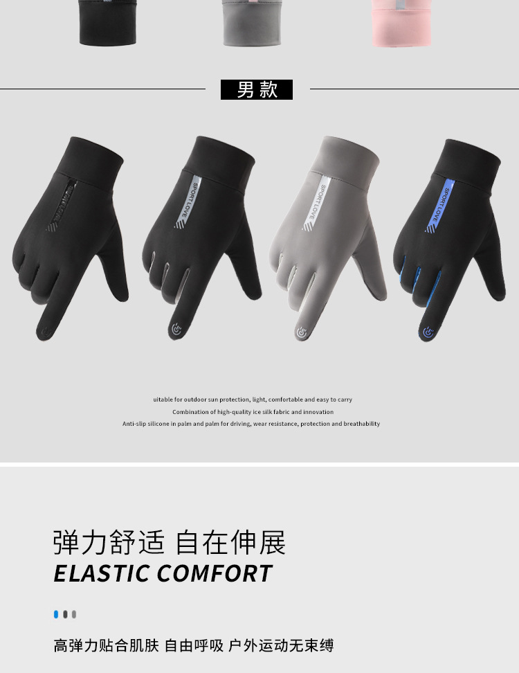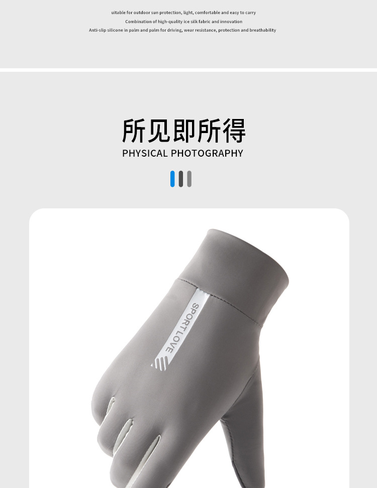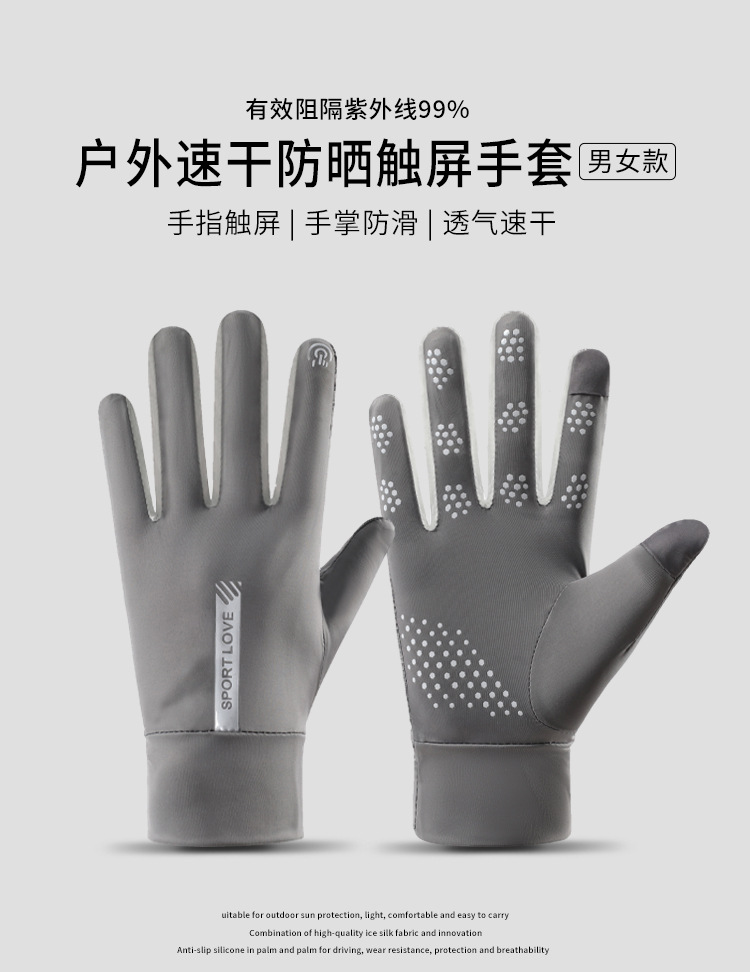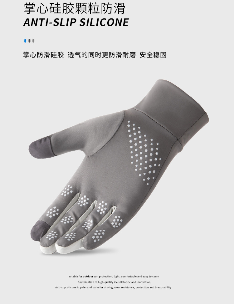 남성과 여성을위한 태양 보호 장갑 여름 안티 자외선 얇은 미끄럼 방지 터치 스크린 아이스 실크 통기성 야외 스포츠 운전 및 승마