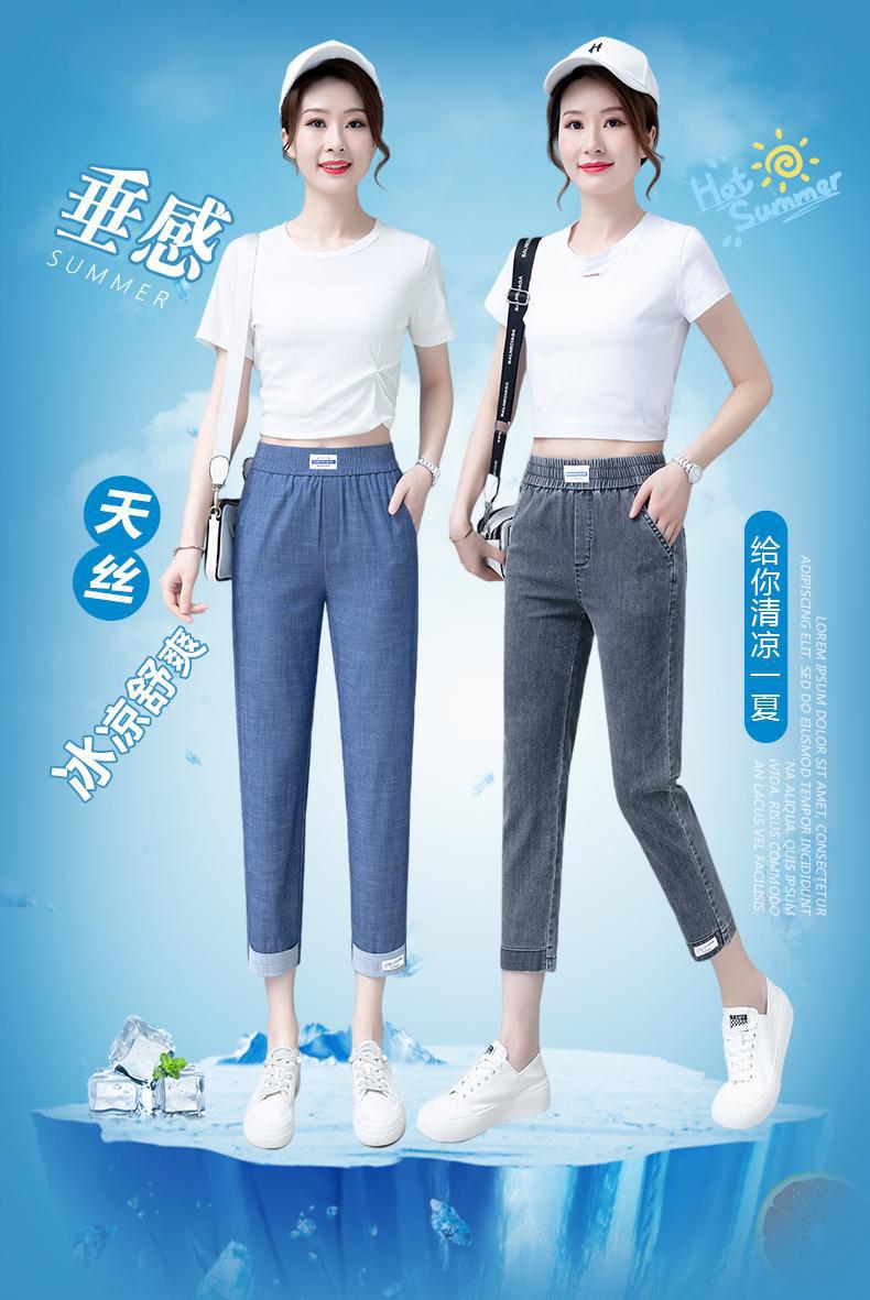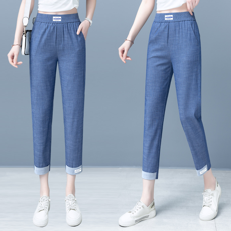 텐셀 청바지 여성 봄과 가을 여름 얇은 2023 신탄성 높은 허리 스트레이트 파이프 9 점 아이스 실크 하렘 팬츠스토어 가기