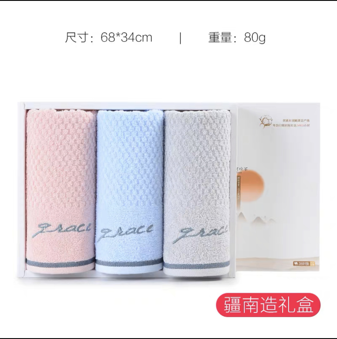 Jieliya 순면 수건 선물 상자 세트 3 팩 신장 남쪽 만든 반환 선물 그룹 구매 동반 선물 자수 로고스토어 가기
