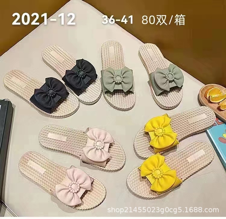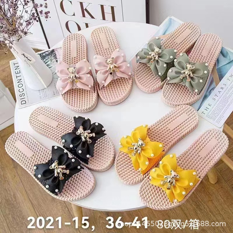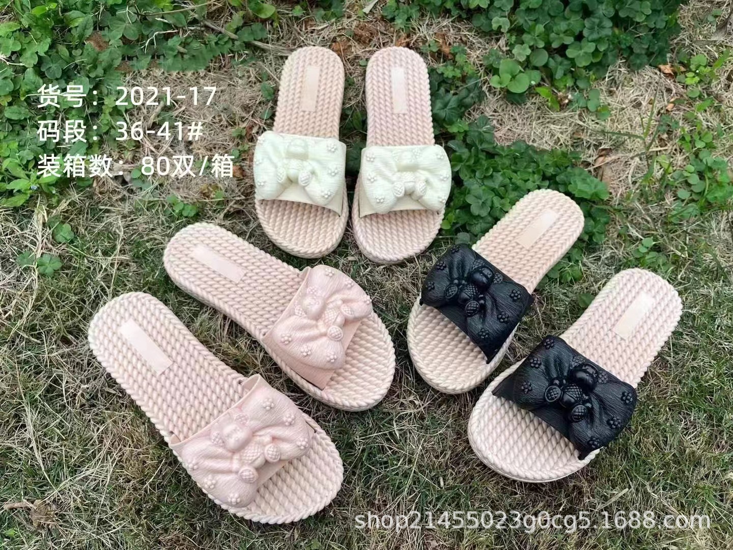 여성을위한 홈 슬리퍼 2023 새로운 여름 패션 플랫 로우 힐 보우 pvc 외부 착용 경량 레이디 스타일 도매 s