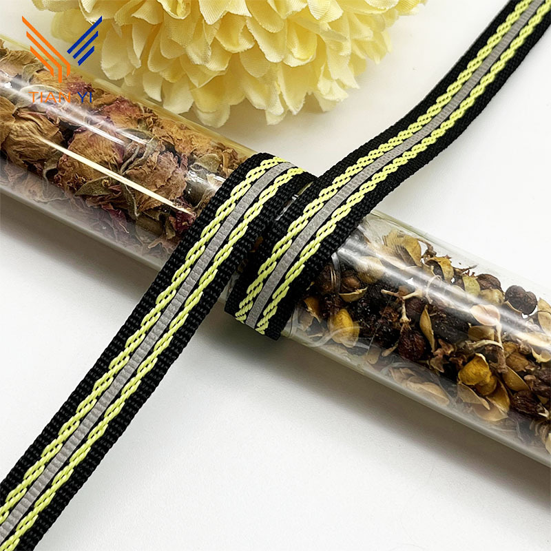 1.2cm 스트라이프 반사 자카드 리본 간격 색상 점프 포인트 홈 섬유 커튼 신발 및 모자 포장 의류 액세서리