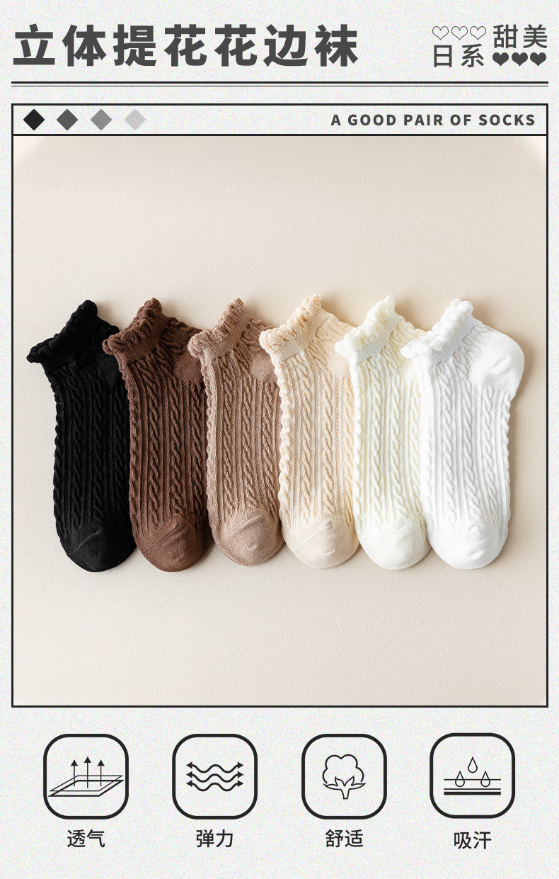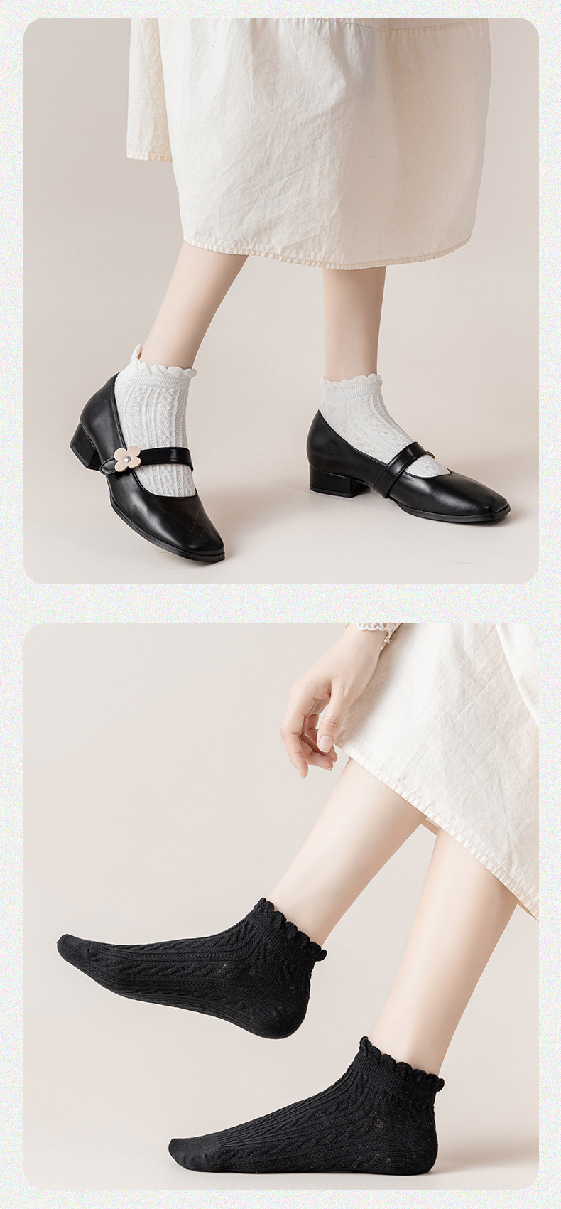 메리제인 숏 코튼 양말 여성용 봄 가을 스타일 로우컷 얕은 입구 보트 양말 러플 레이스 일본 스타일 가죽 신발과 함께 도매스토어 가기