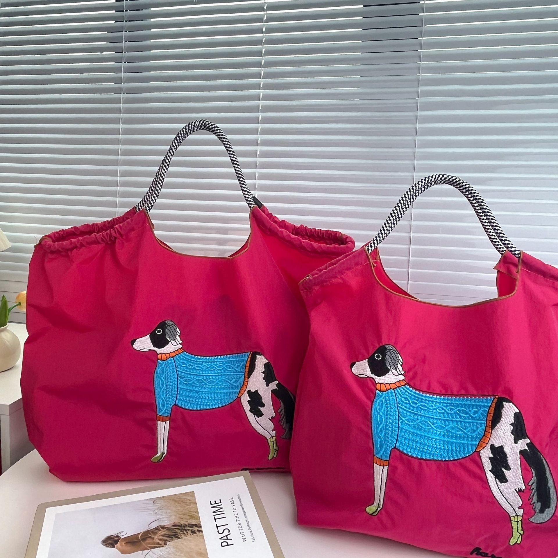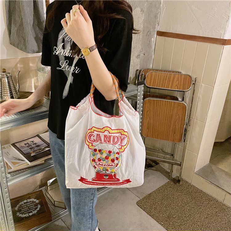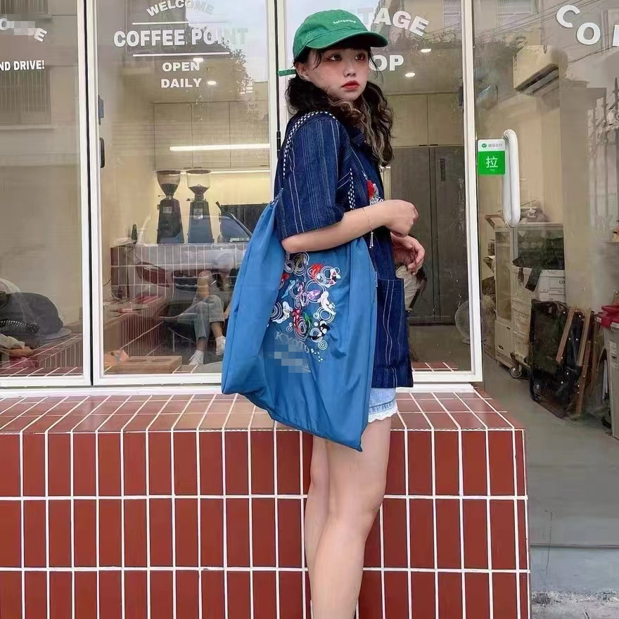 폭발성 토트 백 여성 나일론 숄더 백 올 매치 캔버스 백 방수 토트 백 휴대용 자수 크로스 바디 백스토어 가기