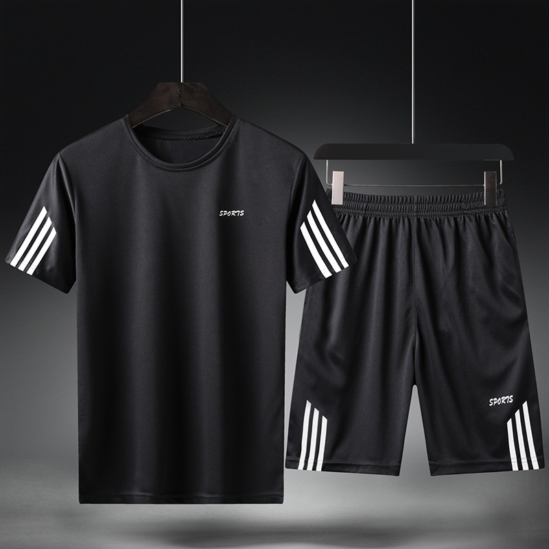 여름 남성 캐주얼 세트 학생 플러스 사이즈 트렌디 한국 느슨한 달리기 피트니스 통기성 속건 스포츠 세트