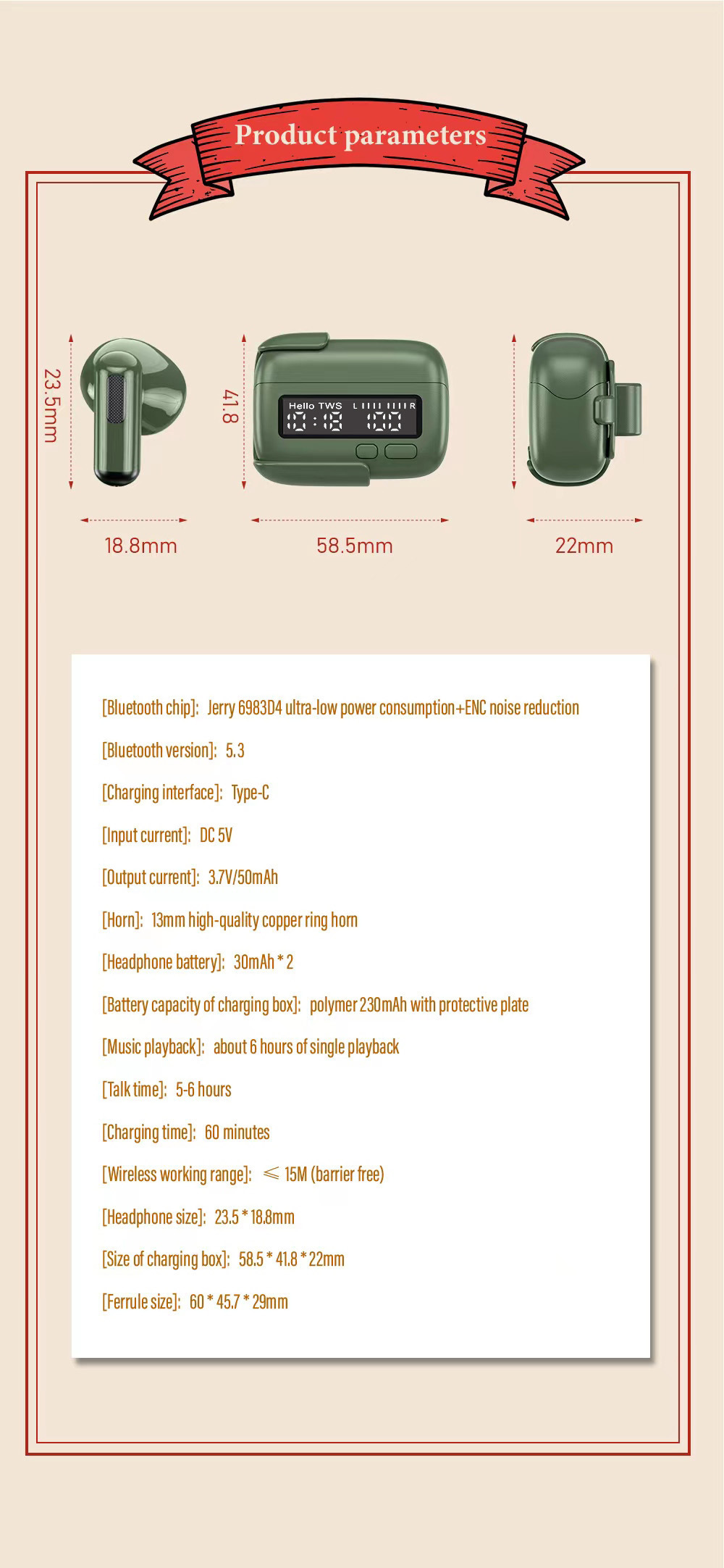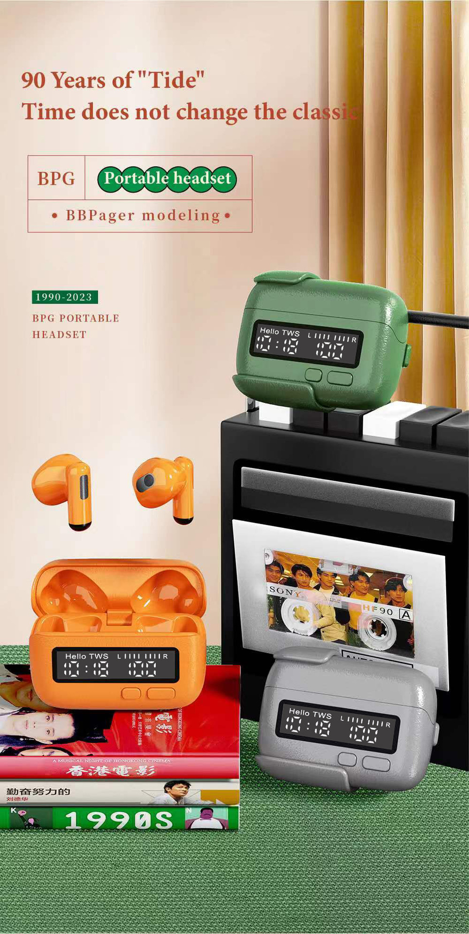 2025년 신형 크로스보더 BPG 휴대용 무선 블루투스 이어폰 BB 기기 독특한 레트로 디지털 디스플레이 시계 CE 인증
