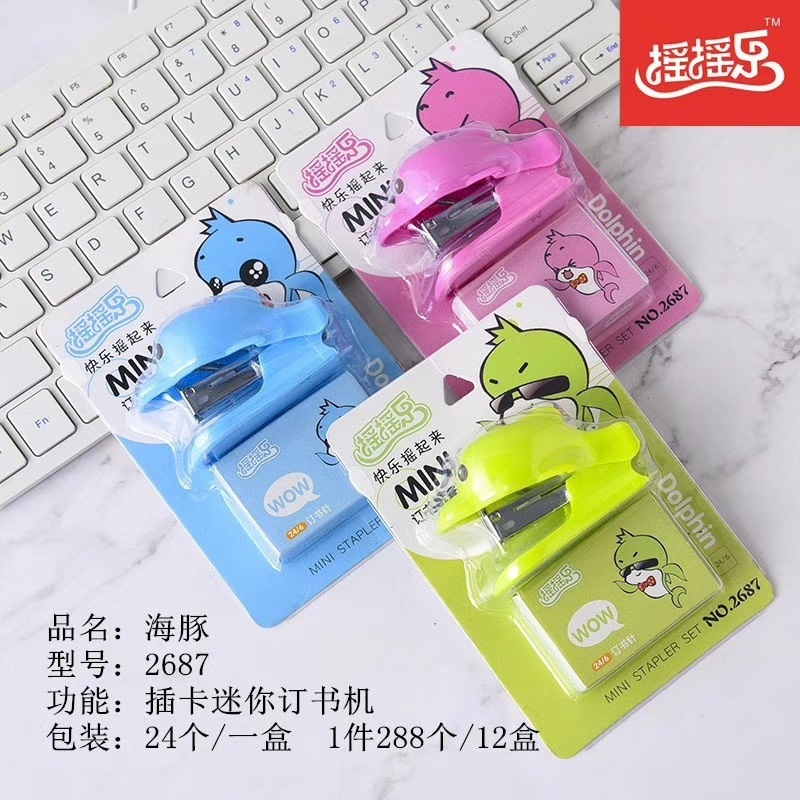 초등학교 학생 미니 스테이플러 세트 휴대용 12 만화 스테이플러 어린이 스테이플러 학습 사무실 유니버설스토어 가기