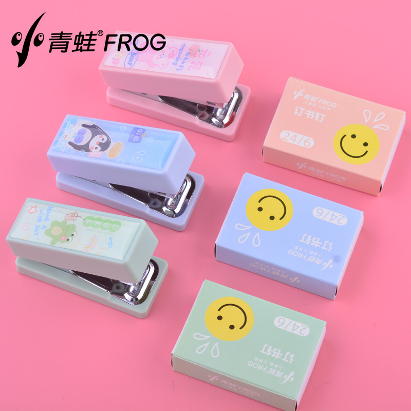 초등학교 학생 미니 스테이플러 세트 휴대용 12 만화 스테이플러 어린이 스테이플러 학습 사무실 유니버설