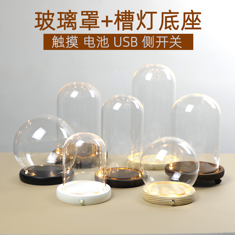 공장 직접 모델 빌딩 블록 빛 공예 장식품 투명 유리 꽃병과 빛나는 영원한 꽃 유리 커버스토어 가기