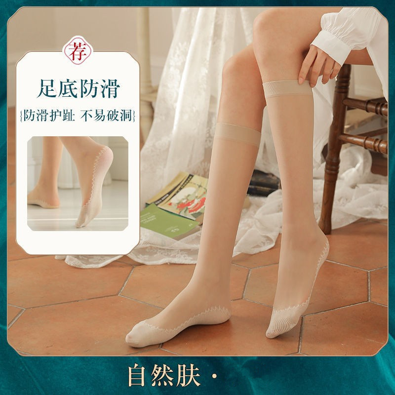 롱샤 미드 튜브 스타킹 여성용 초박형 걸림 방지 실크 송아지 양말 여름 살색 보이지 않는 긴 튜브 여름 반 길이 양말