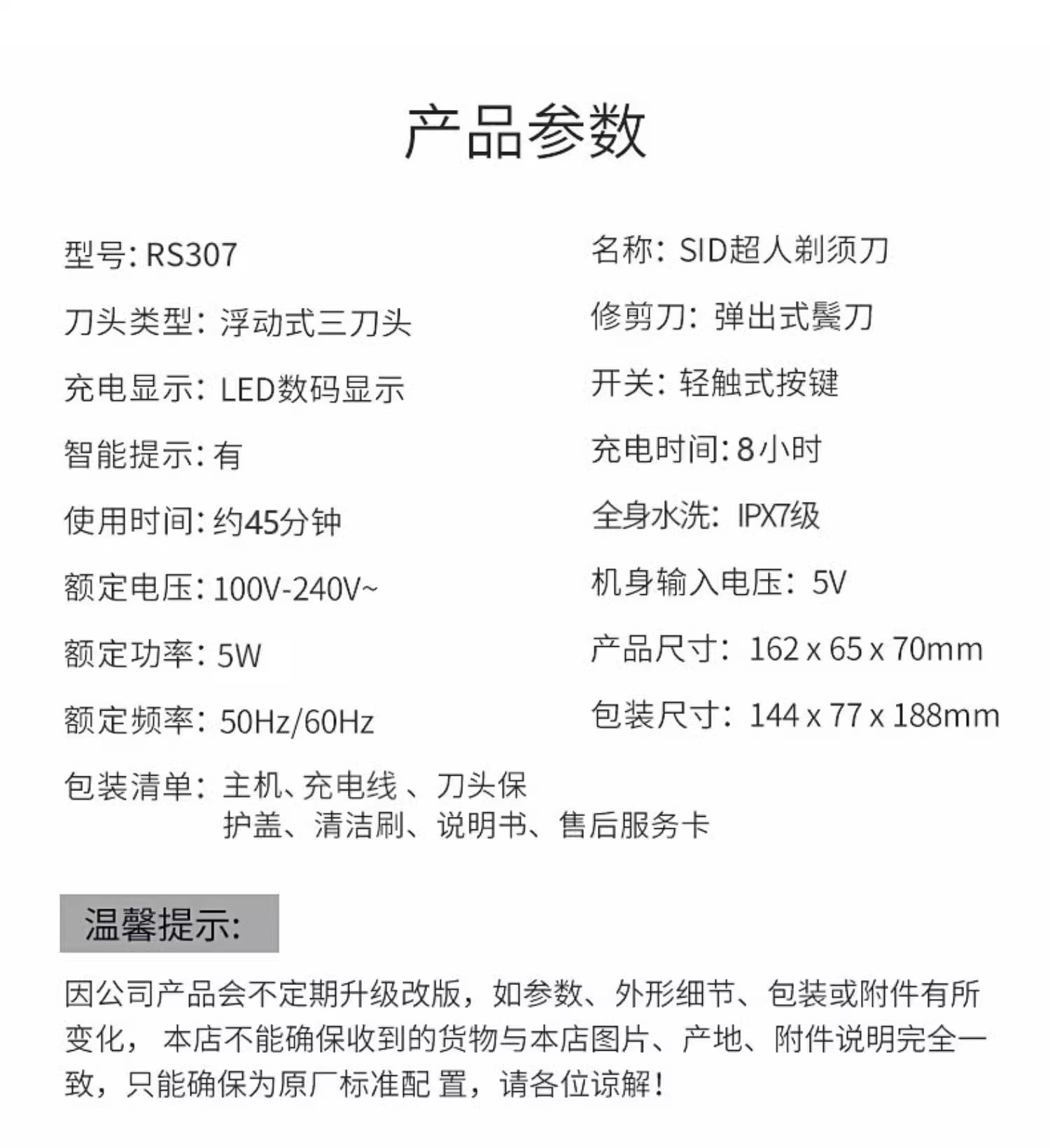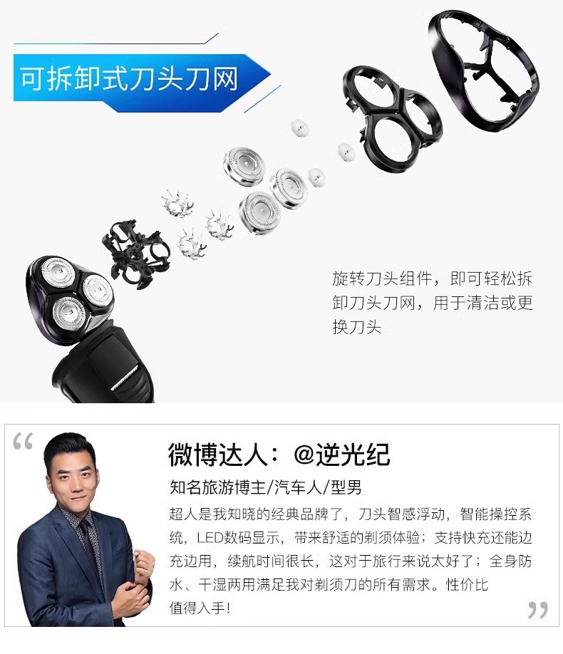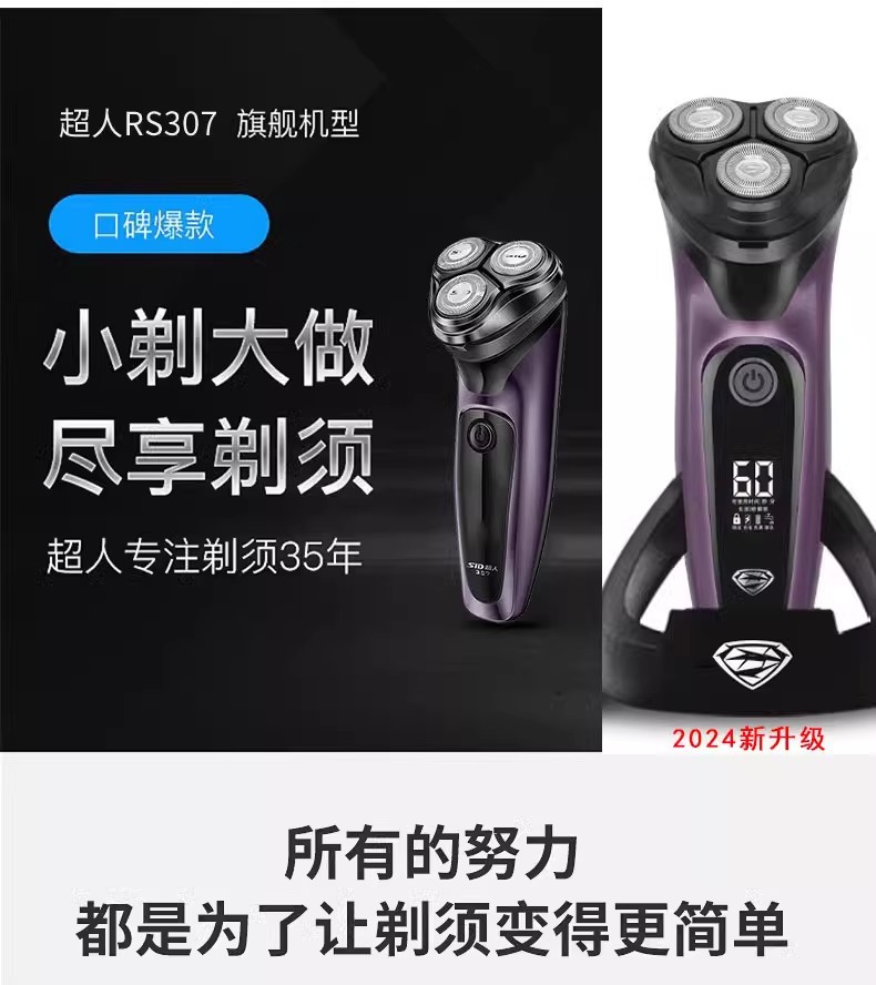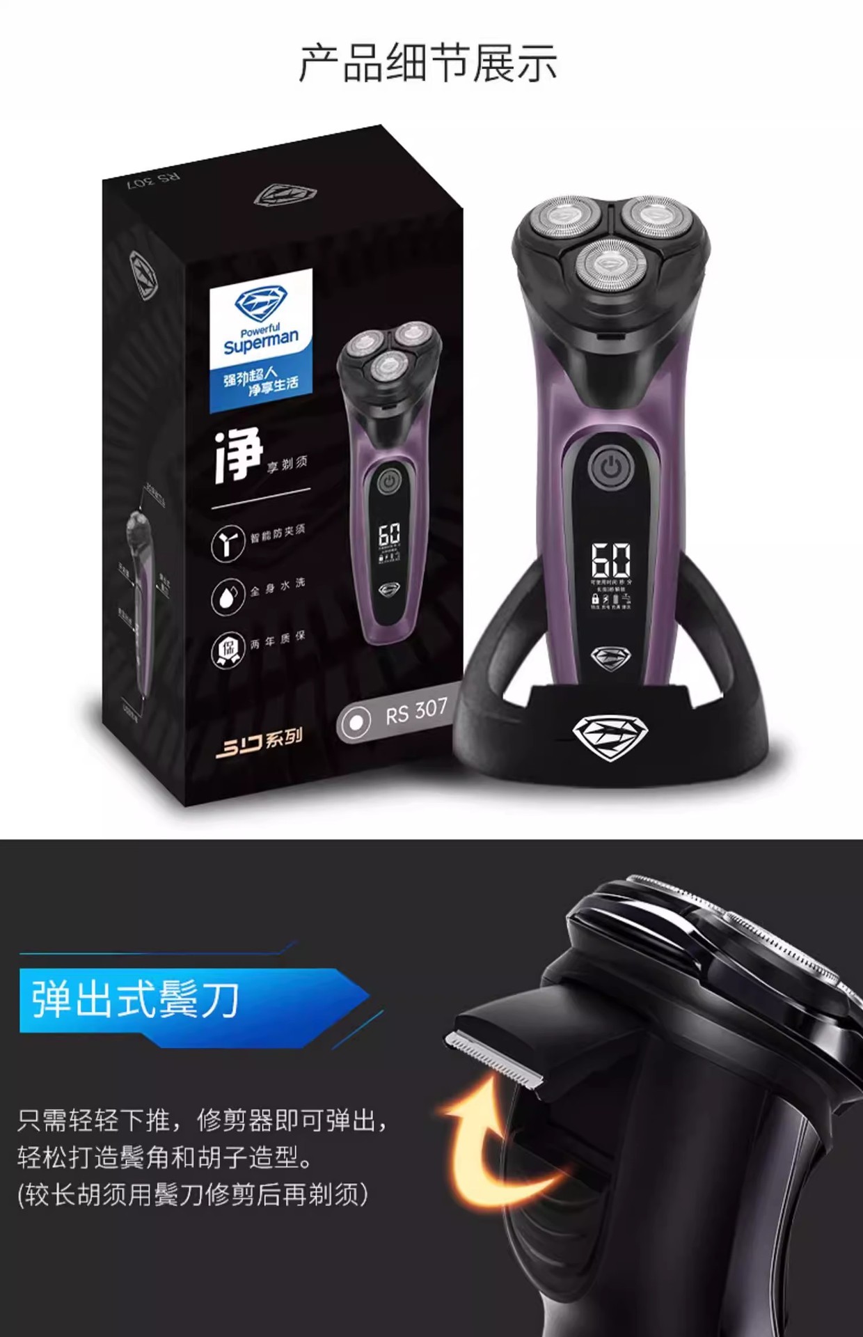 슈퍼맨 면도기 RS307 디지털 디스플레이 전기 면도기 전신 세척 가능 충전식 3헤드 남성용 휴대용 정품스토어 가기