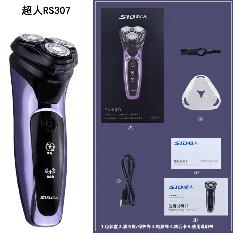 슈퍼맨 면도기 RS307 디지털 디스플레이 전기 면도기 전신 세척 가능 충전식 3헤드 남성용 휴대용 정품