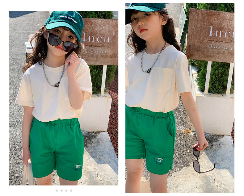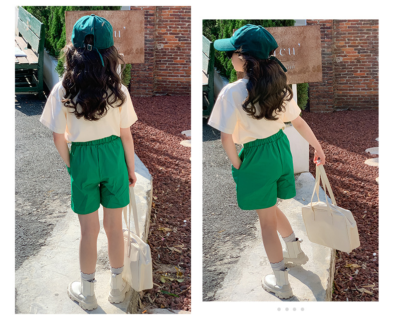 여아 여름옷 세트 2024 신상 중대형 어린이용 세련된 캐주얼 반팔 티셔츠와 스포츠 반바지 투피스 세트 트렌디한 스타일스토어 가기