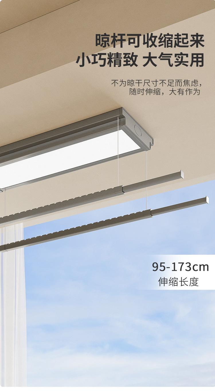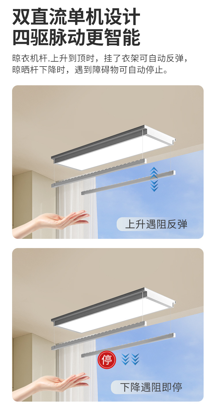 지능형 전기 건조 랙 원격 제어 초박형 7cm 텔레스코픽 리프팅 발코니 더블 폴 임베디드 가정용 자동 건조 랙