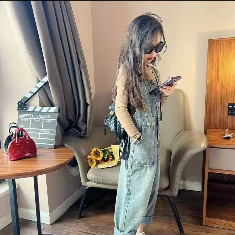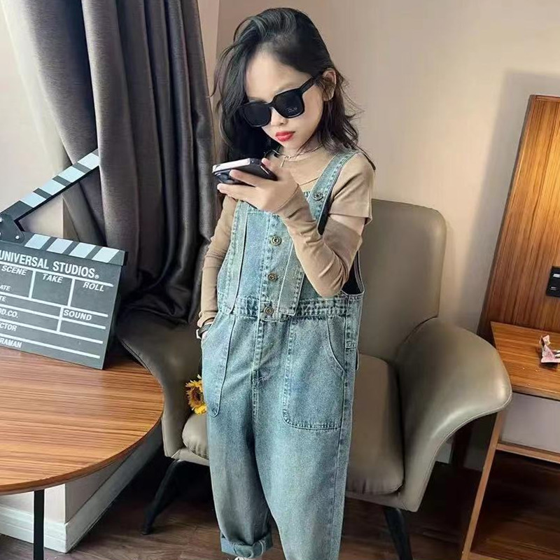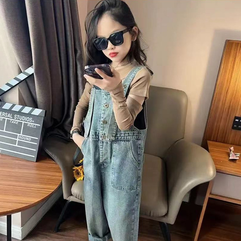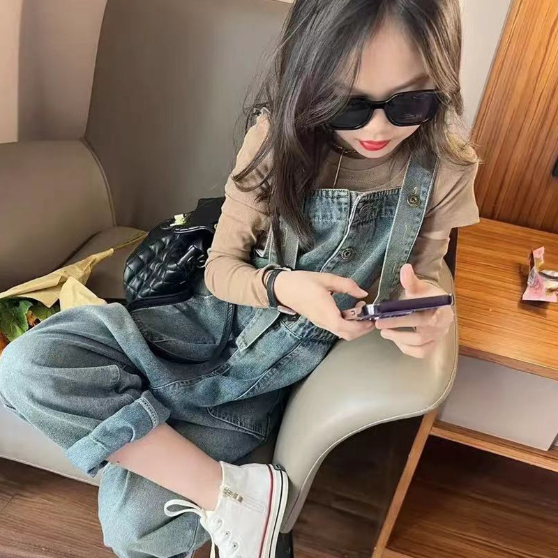 여아 데님 멜빵 세트 2023 봄 가을 새로운 아기 캐주얼 웨스턴 스타일 탑 어린이 올매치 스트레이트 팬츠