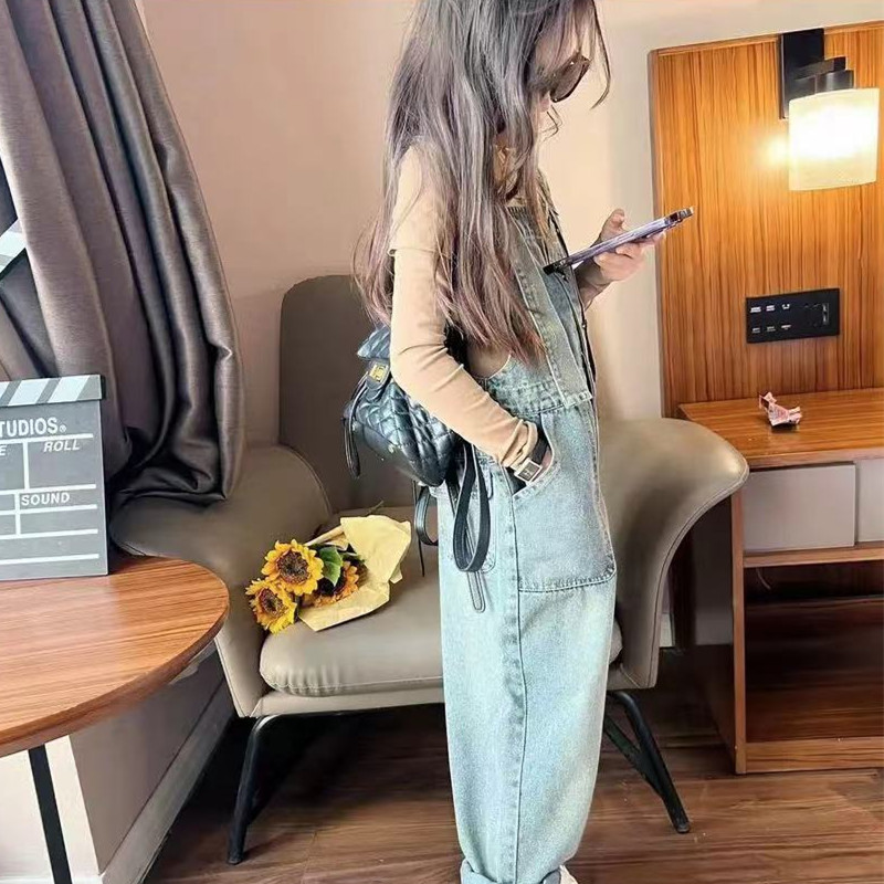 여아 데님 멜빵 세트 2023 봄 가을 새로운 아기 캐주얼 웨스턴 스타일 탑 어린이 올매치 스트레이트 팬츠스토어 가기