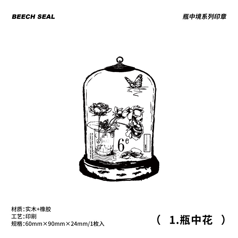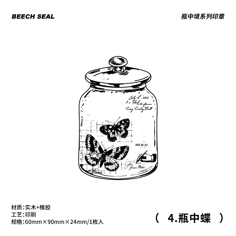 황혼 단단한 나무 물개 병 Zhongjing 시리즈 복고풍 유리 병 패턴 손 계정 장식 재료 1 개