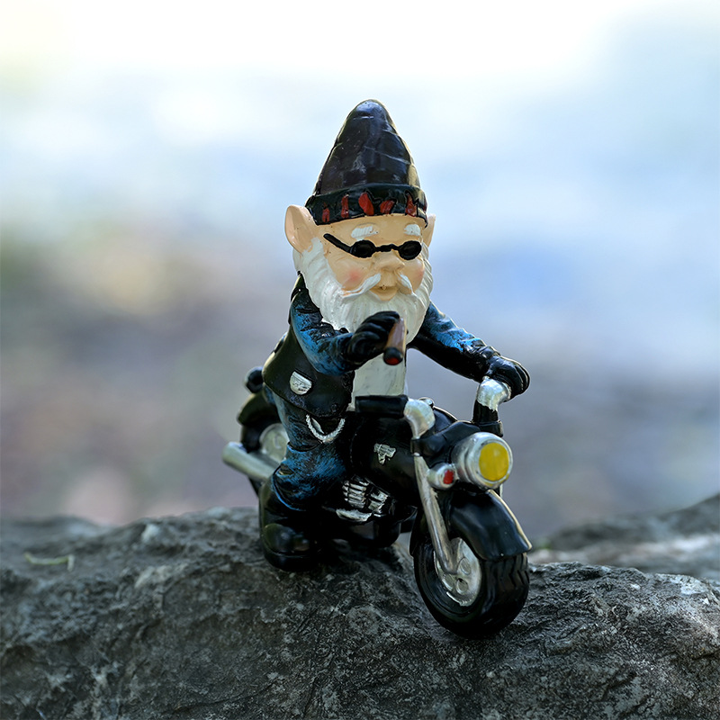 크로스 보더 정원 장식 난쟁이 수지 공예 만화 오토바이 타기 노인 크리스마스 선물 장식품스토어 가기
