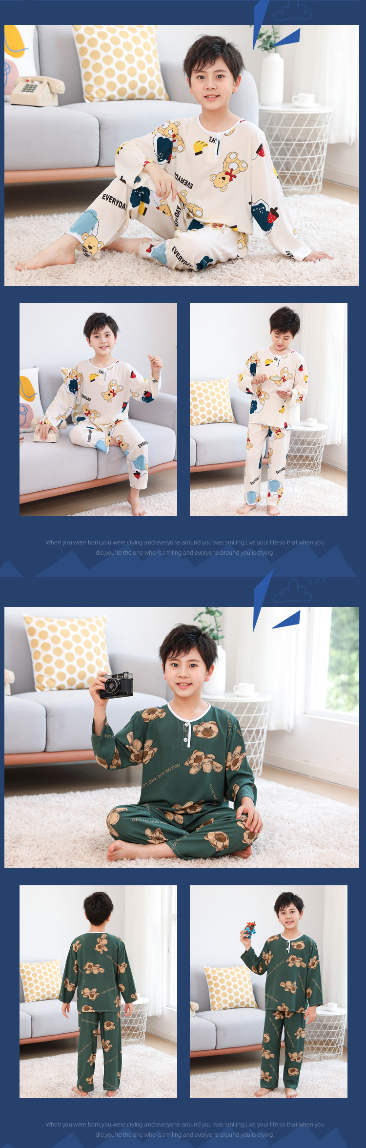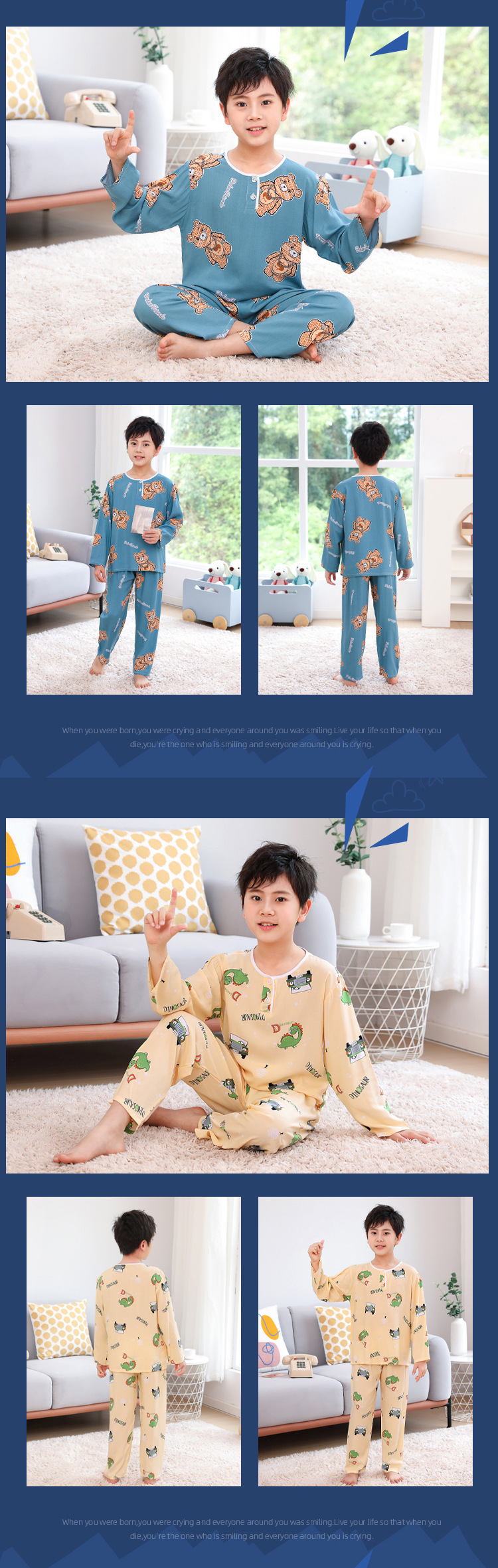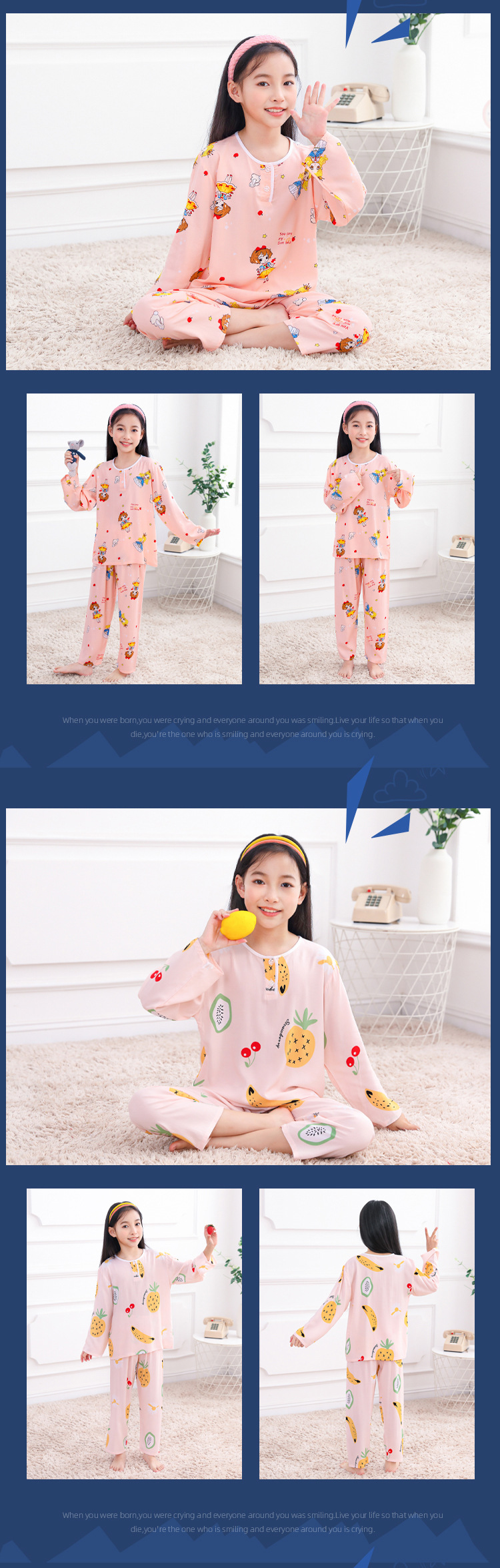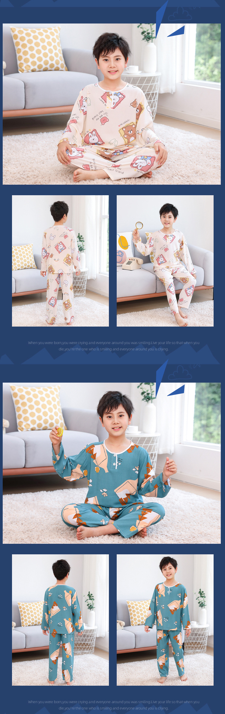 어린이 잠옷 여름 소녀의 소년의 면 실크 잠옷 소년의 긴 소매 여름 얇은 에어컨 옷 세트스토어 가기