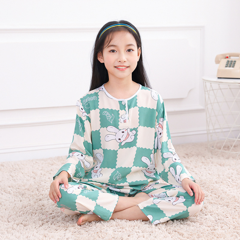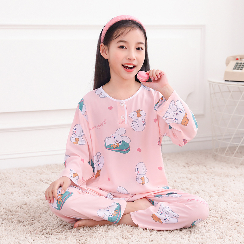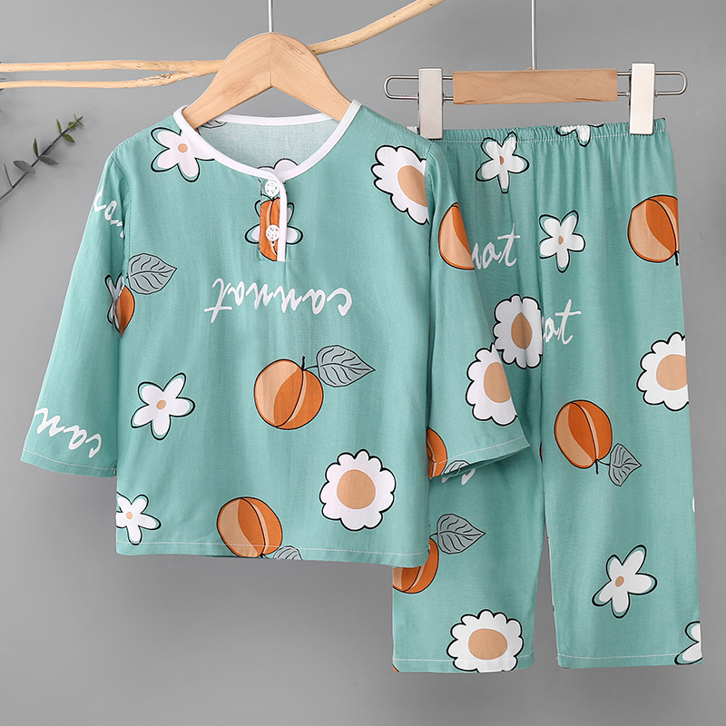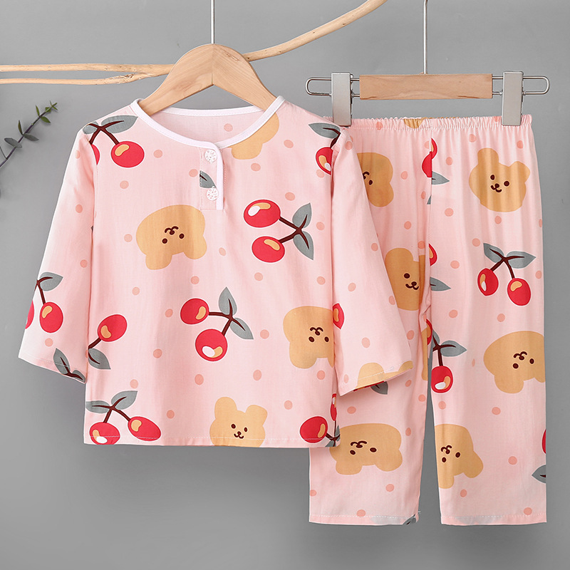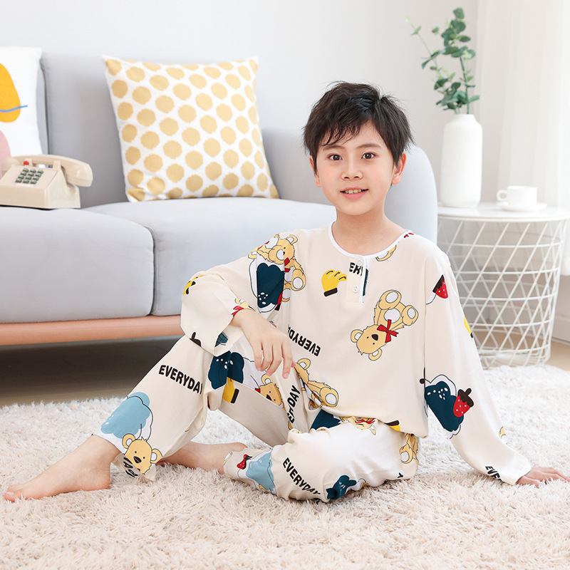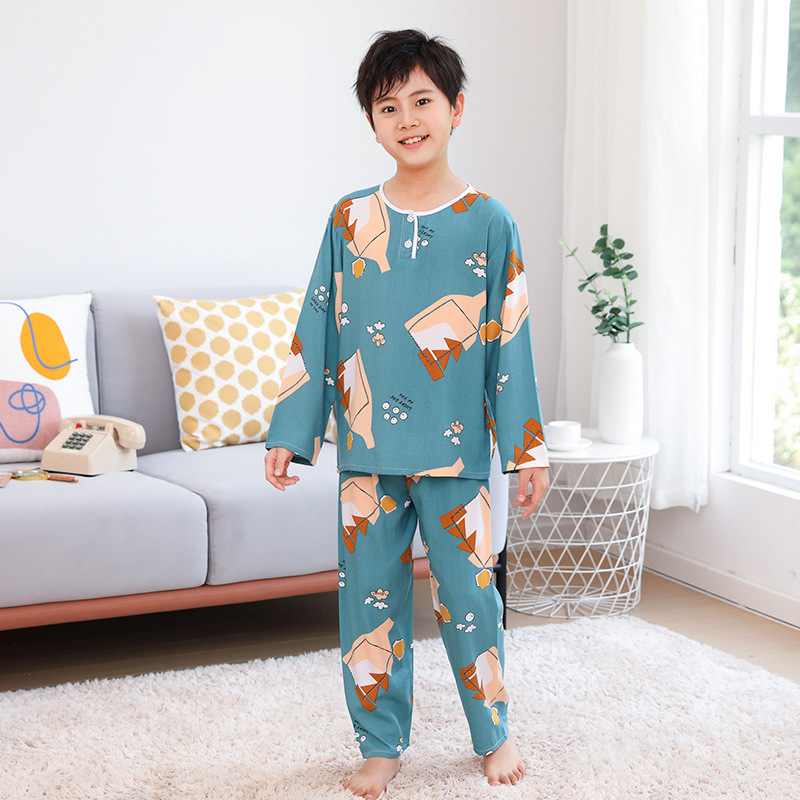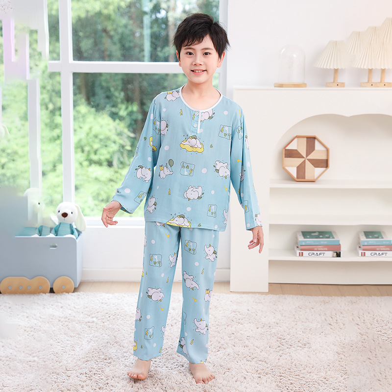 어린이 잠옷 여름 소녀의 소년의 면 실크 잠옷 소년의 긴 소매 여름 얇은 에어컨 옷 세트스토어 가기