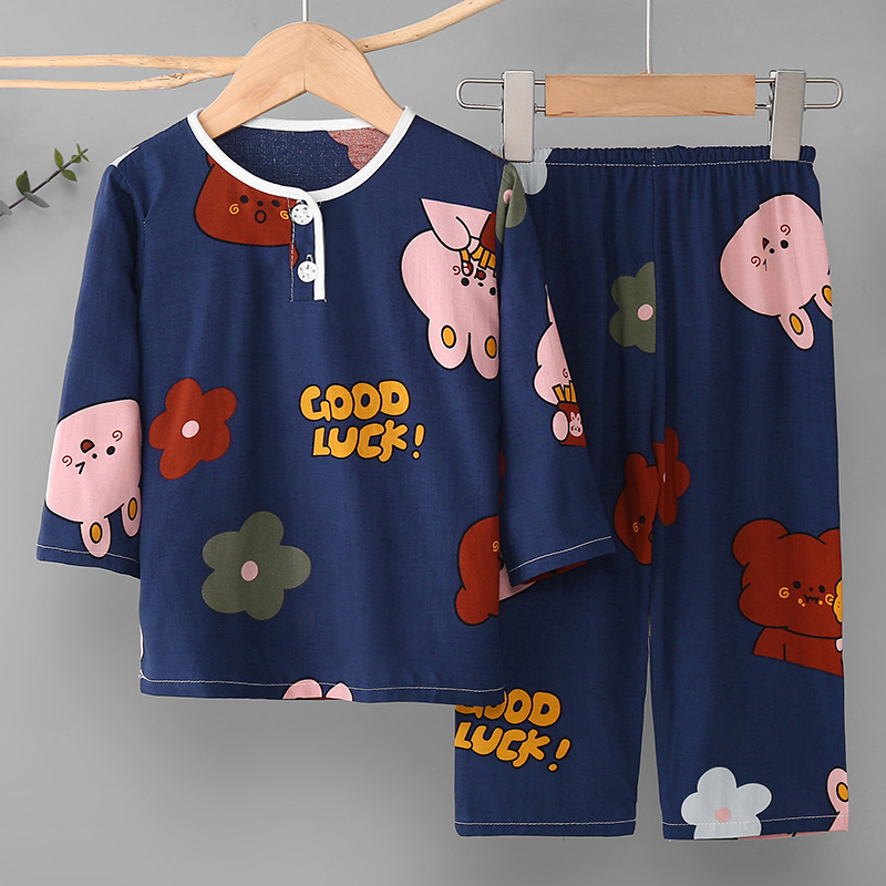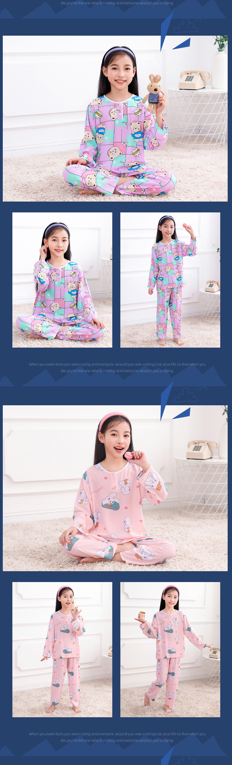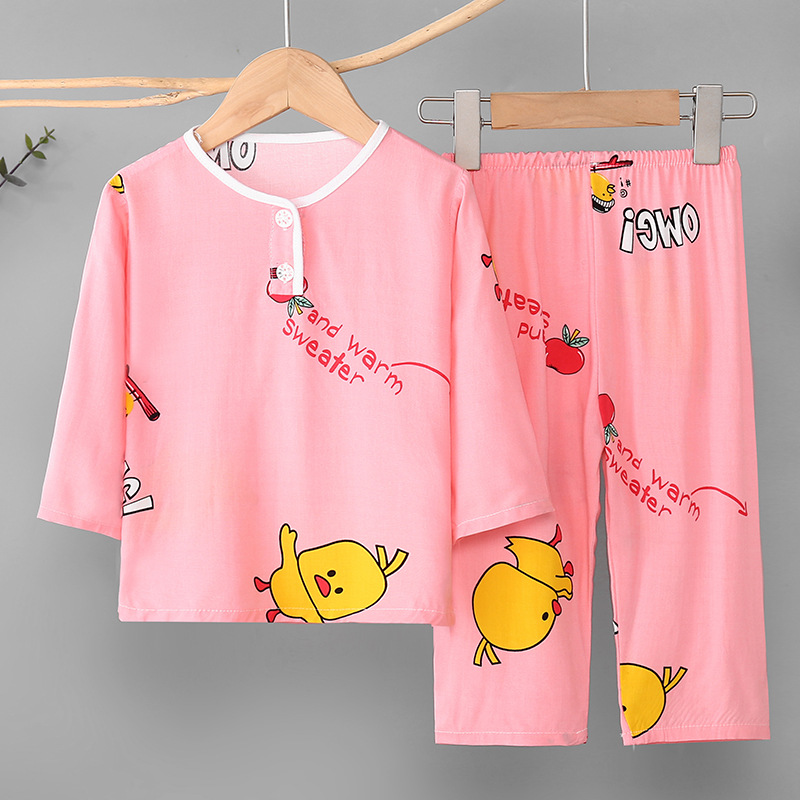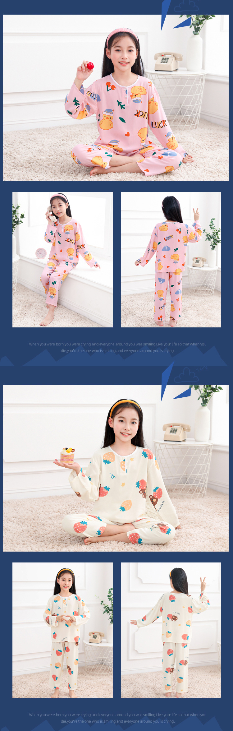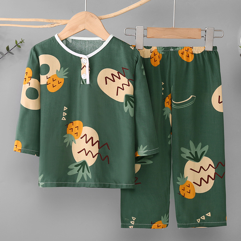 어린이 잠옷 여름 소녀의 소년의 면 실크 잠옷 소년의 긴 소매 여름 얇은 에어컨 옷 세트스토어 가기