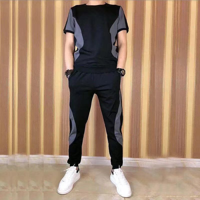 여름 남자의 반팔 티셔츠 아이스 실크 얇은 2023 새로운 패션 브랜드 캐주얼 세트 세트 유행 얼음 느낌 옷스토어 가기
