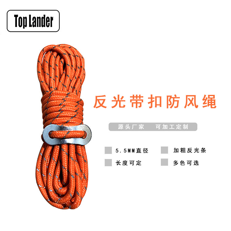 야외 캠핑 텐트 반사 윈드 로프 5.5mm 두께의 발광 로프 고정 방풍 미끄럼 방지 로프 접지 네일 로프 버클