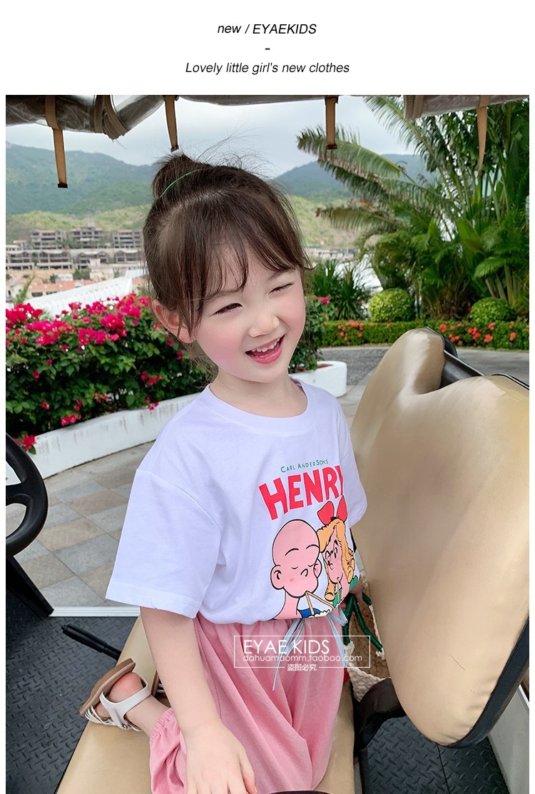 소녀들을위한 100 퓨어면 반팔 티셔츠 2023 년 여름 어린이 새로운 스타일 웨스턴 스타일 중간 및 큰 어린이와 어린 소녀를위한 모든 매치 탑스토어 가기