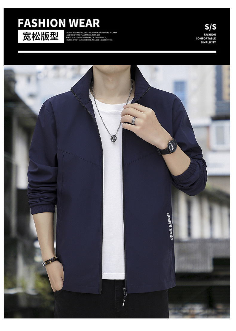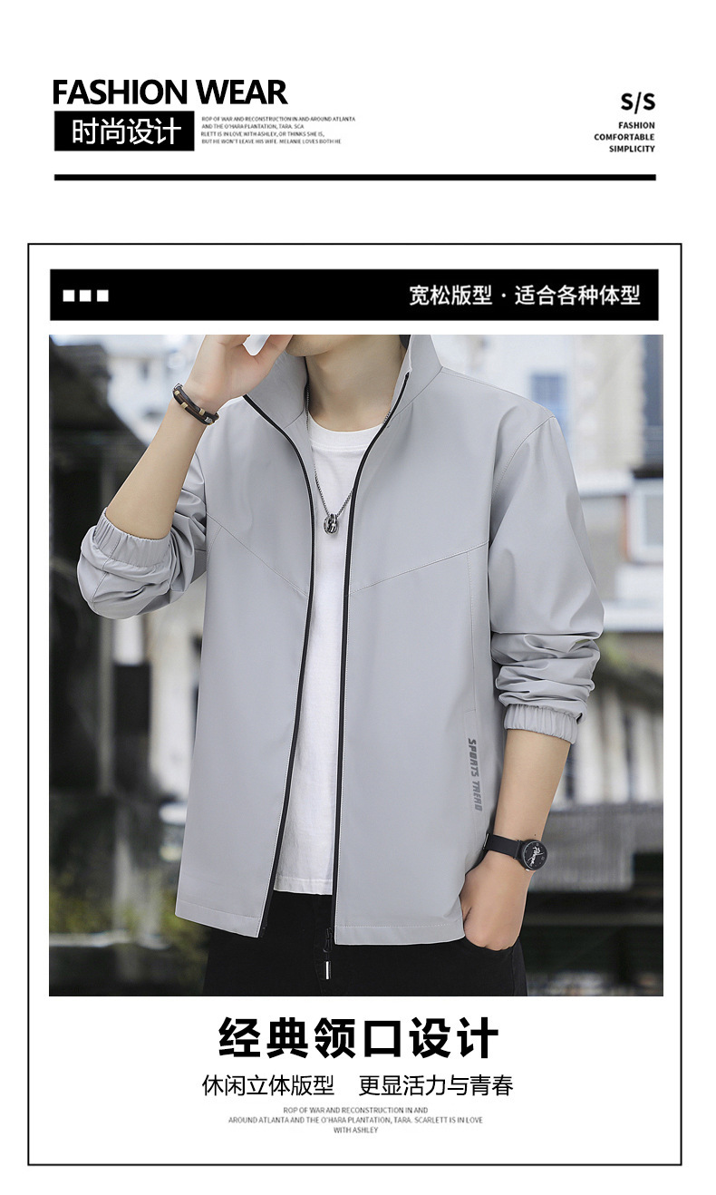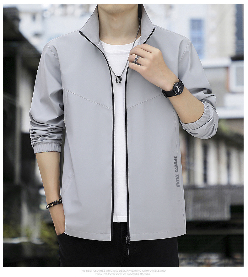 재킷 남성용 2023 봄 새로운 스탠딩 칼라 루즈한 후드 재킷 청소년 심플 모든 매치 캐주얼 편안한 탑스토어 가기