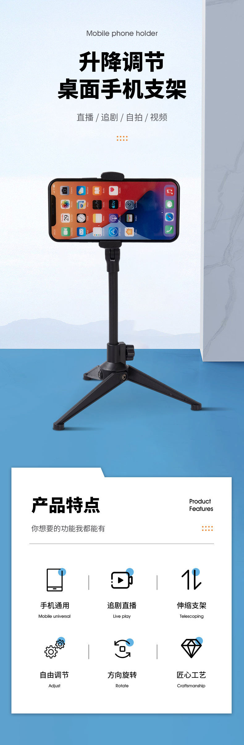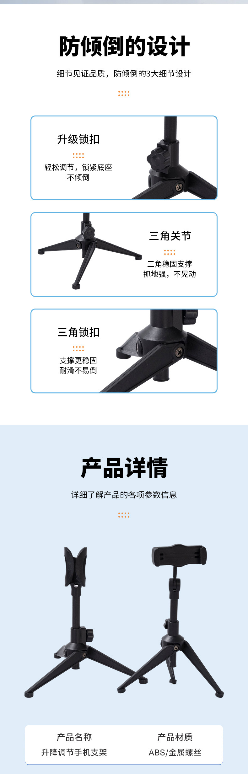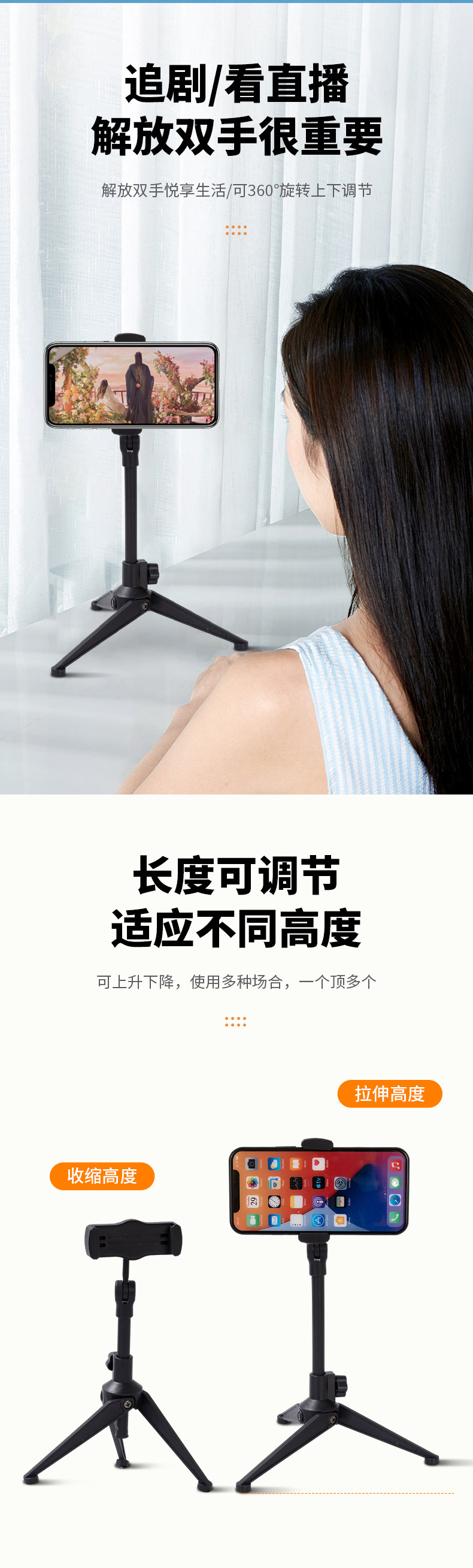 틱톡 휴대폰 라이브 방송 스탠드 삼각대 사진 촬영 셀카 촬영 지지대 안정적인 탁상용 삼각대 휴대용