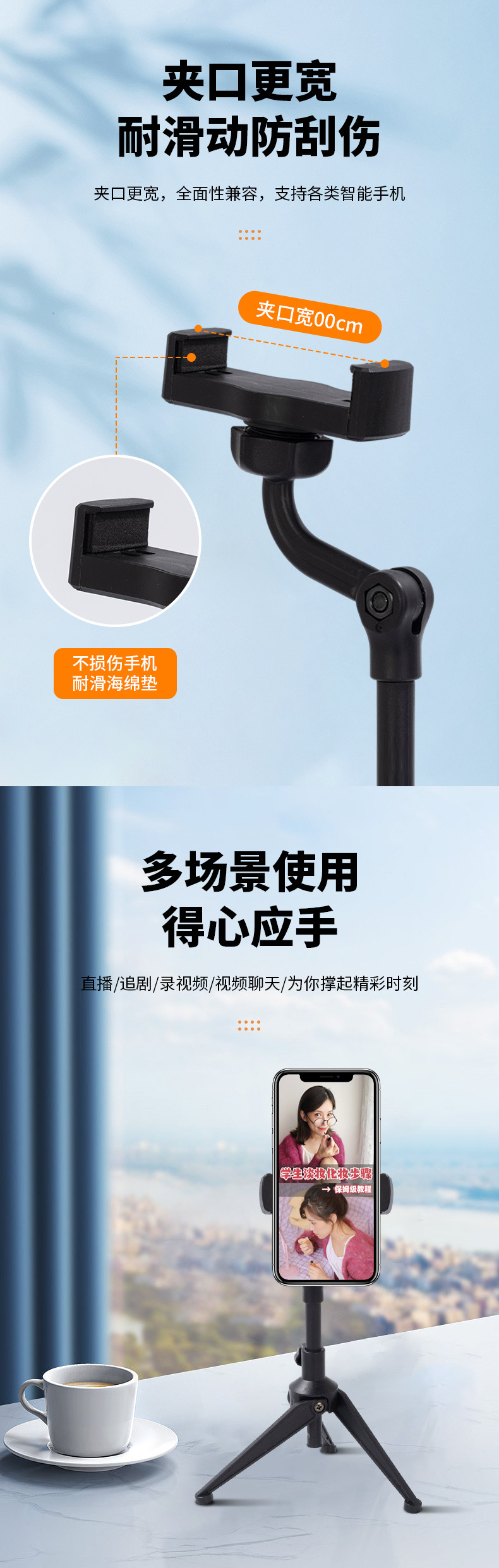 틱톡 휴대폰 라이브 방송 스탠드 삼각대 사진 촬영 셀카 촬영 지지대 안정적인 탁상용 삼각대 휴대용스토어 가기