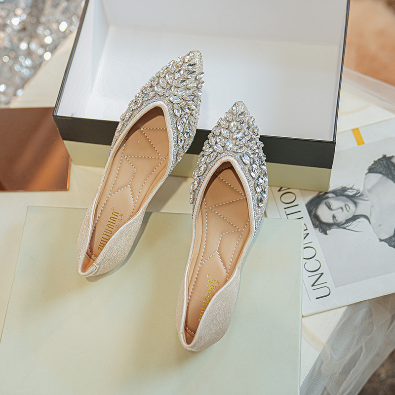 238-16 개의 새로운 라인 석 단일 레이어 신발 여성 신발 뾰족한 발가락 얕은 입 플랫 로퍼 여성의 부드러운 바닥 올 매치 펌프 대형 신발