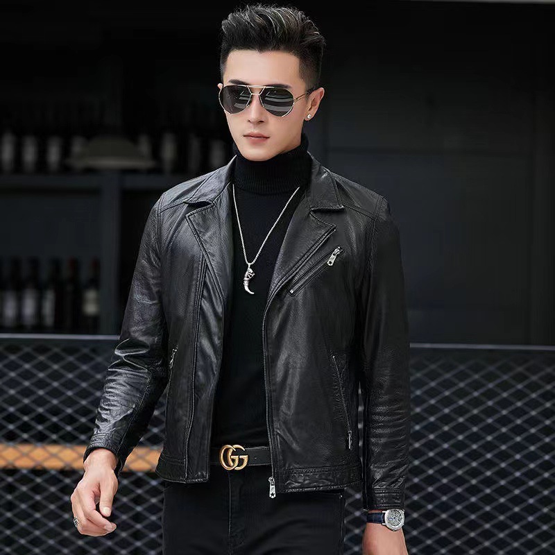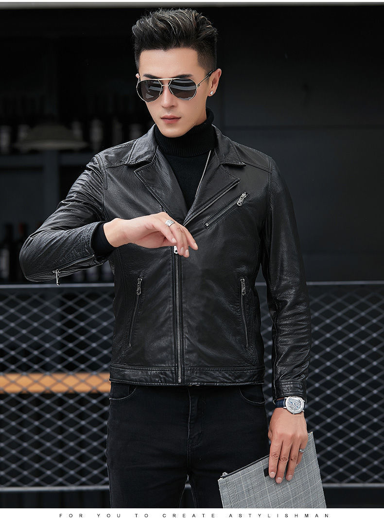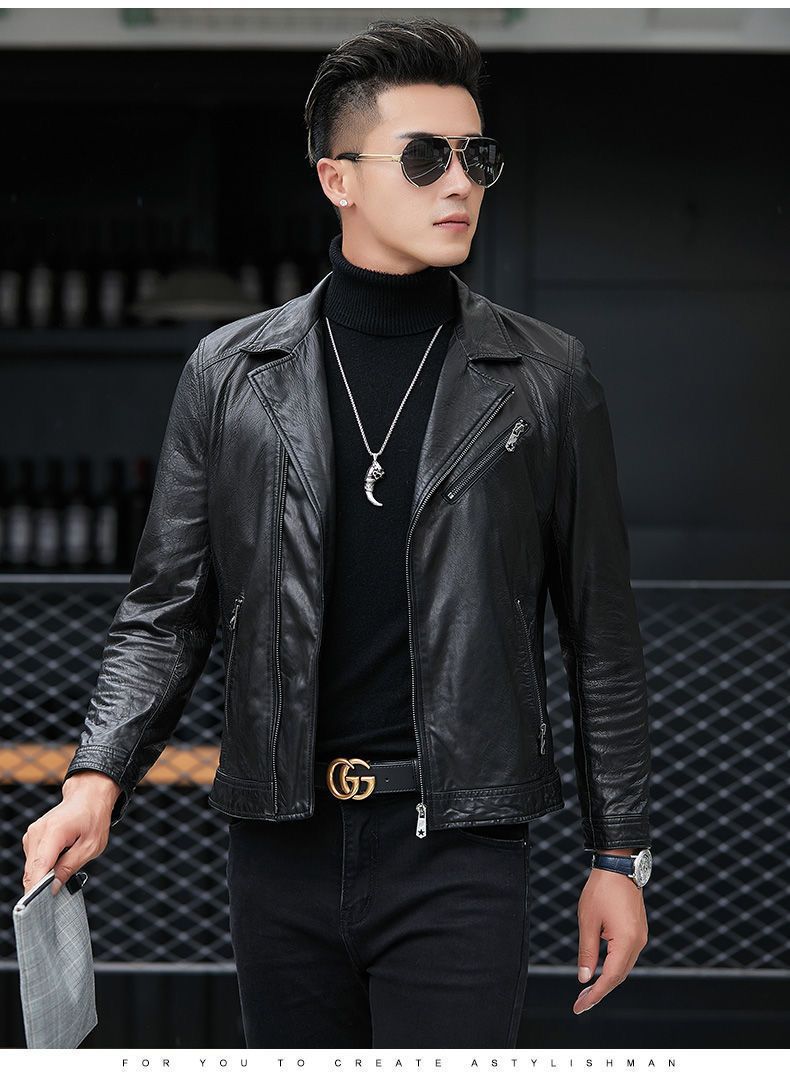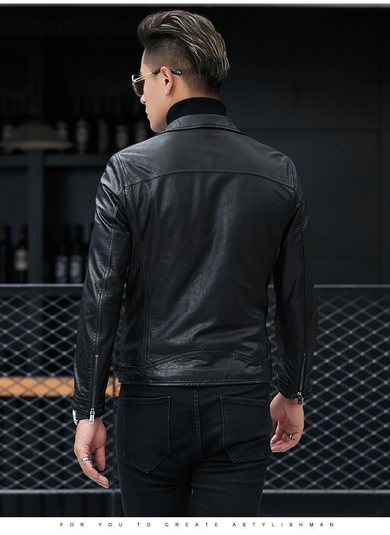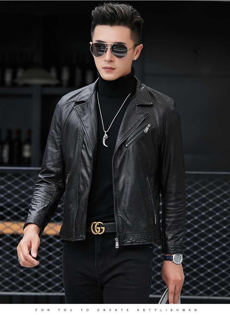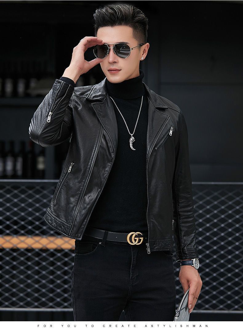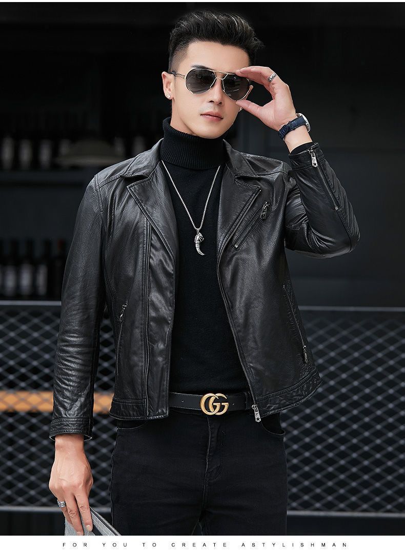 하이닝 신상 얇은 가죽 재킷 남성용 짧은 스타일 바이커 한국 스타일 가죽 재킷 남성용 슬림핏 정장 칼라 캐주얼 재킷스토어 가기