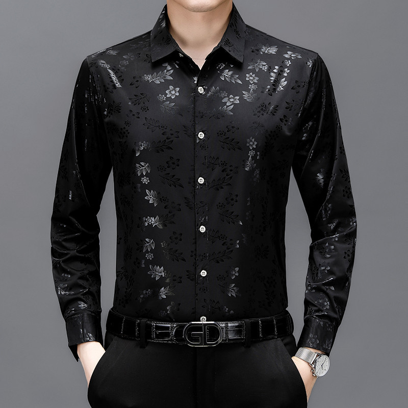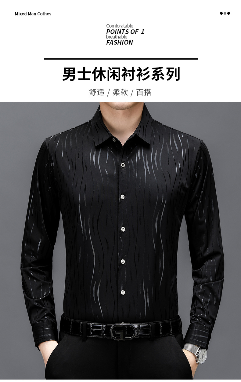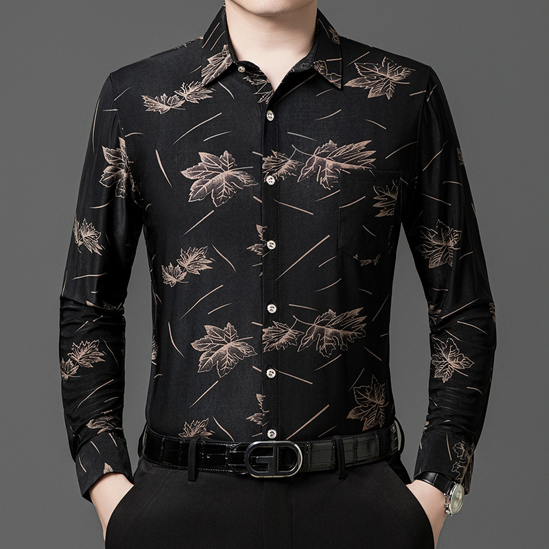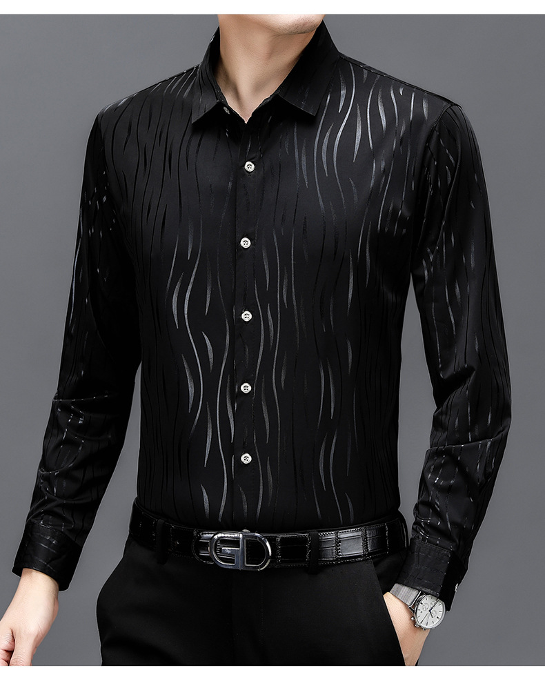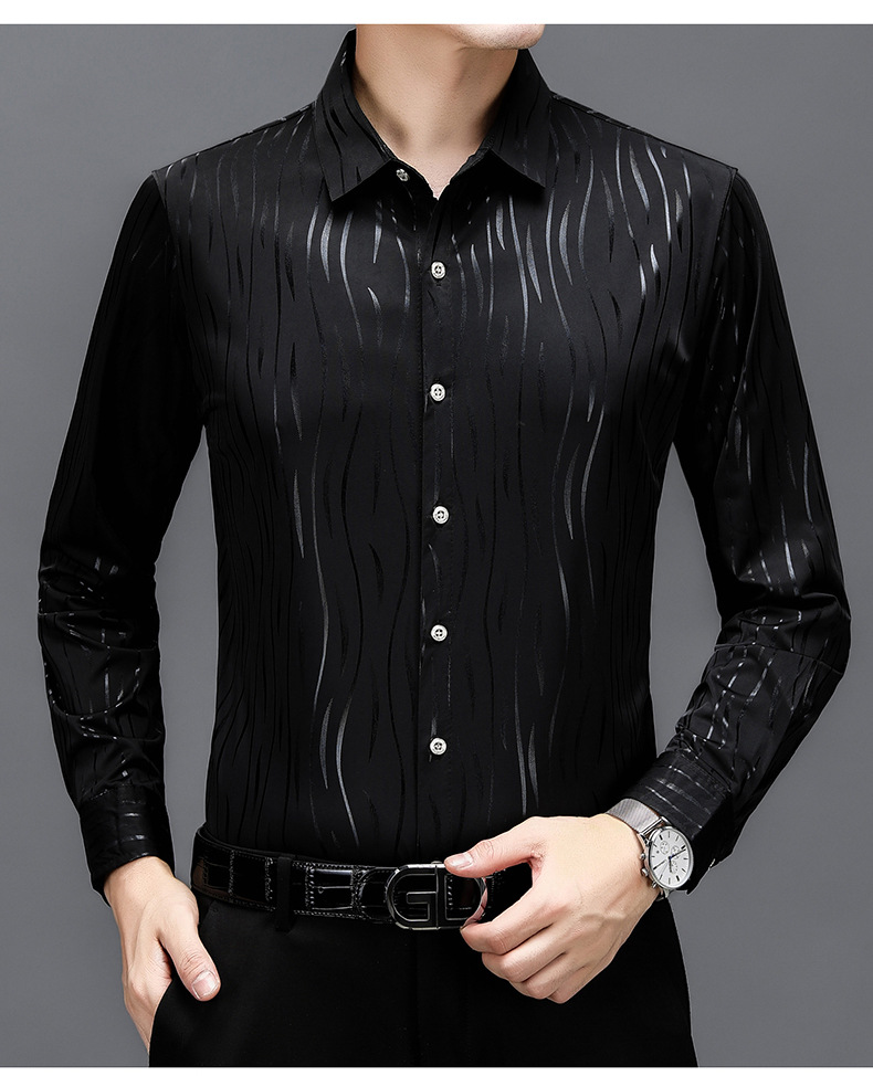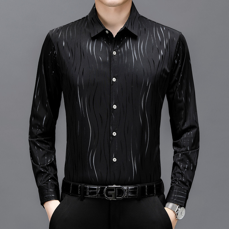 봄과 가을 브론징 남성용 긴팔 스트레치 셔츠 캐주얼 비 다림질 중년 아빠 옷 남성용 루즈 탑 셔츠스토어 가기