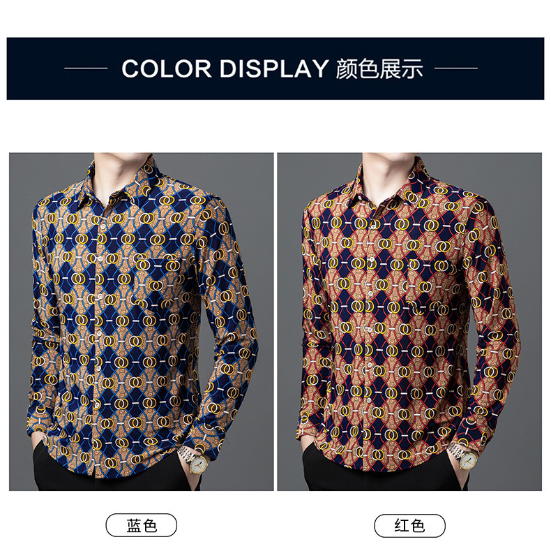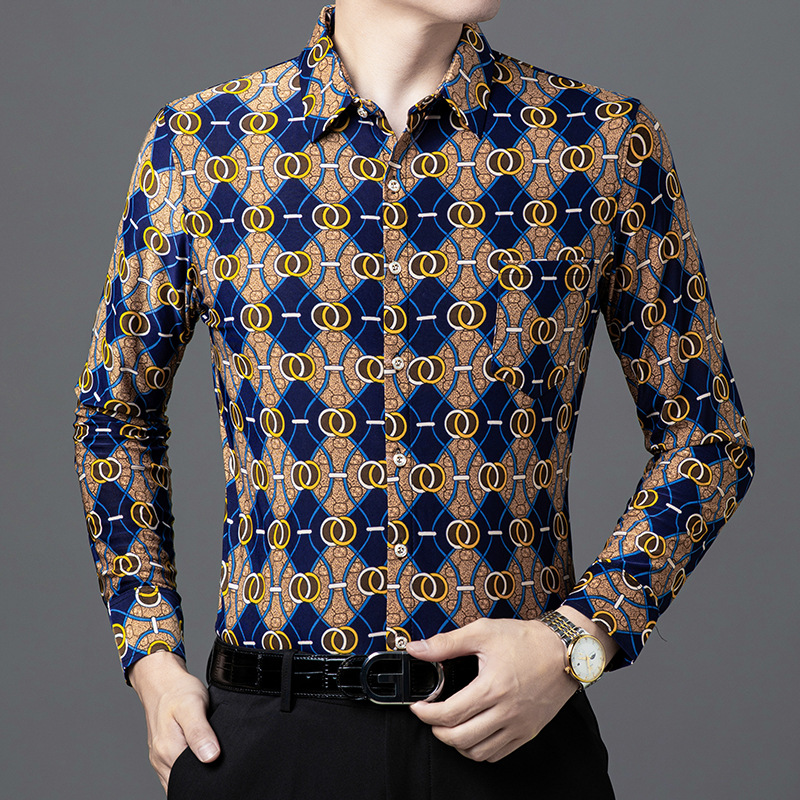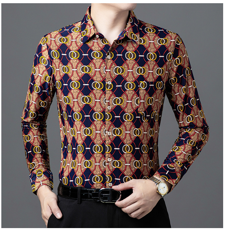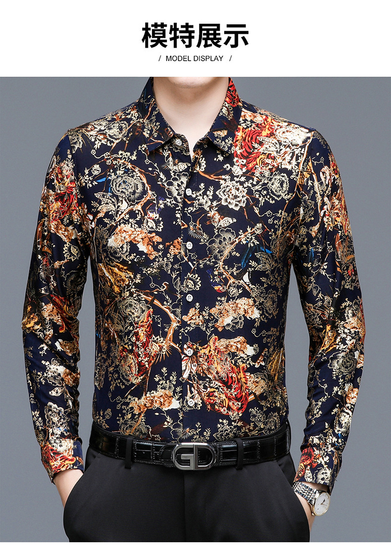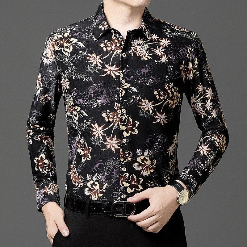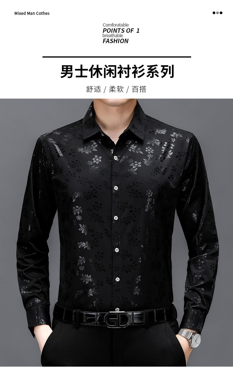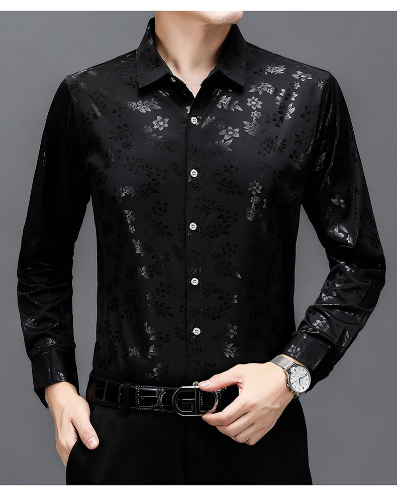 봄과 가을 브론징 남성용 긴팔 스트레치 셔츠 캐주얼 비 다림질 중년 아빠 옷 남성용 루즈 탑 셔츠스토어 가기