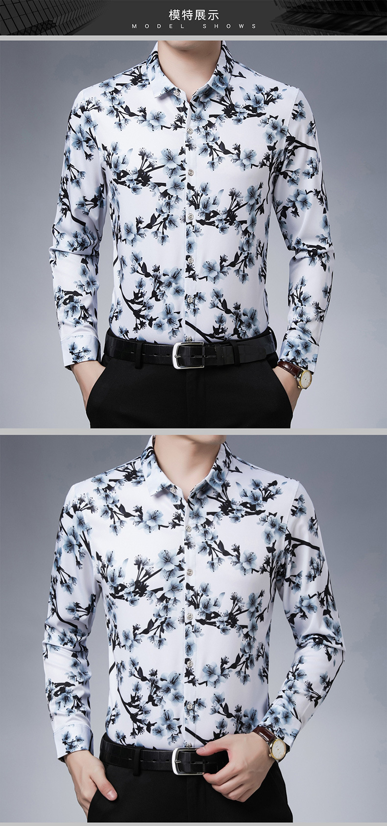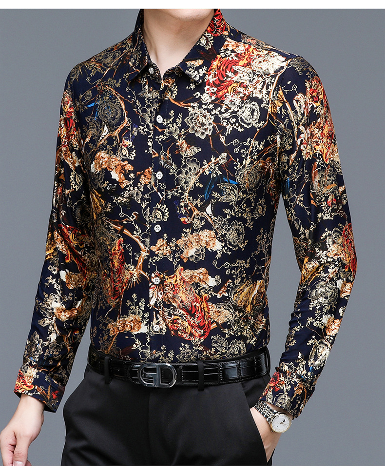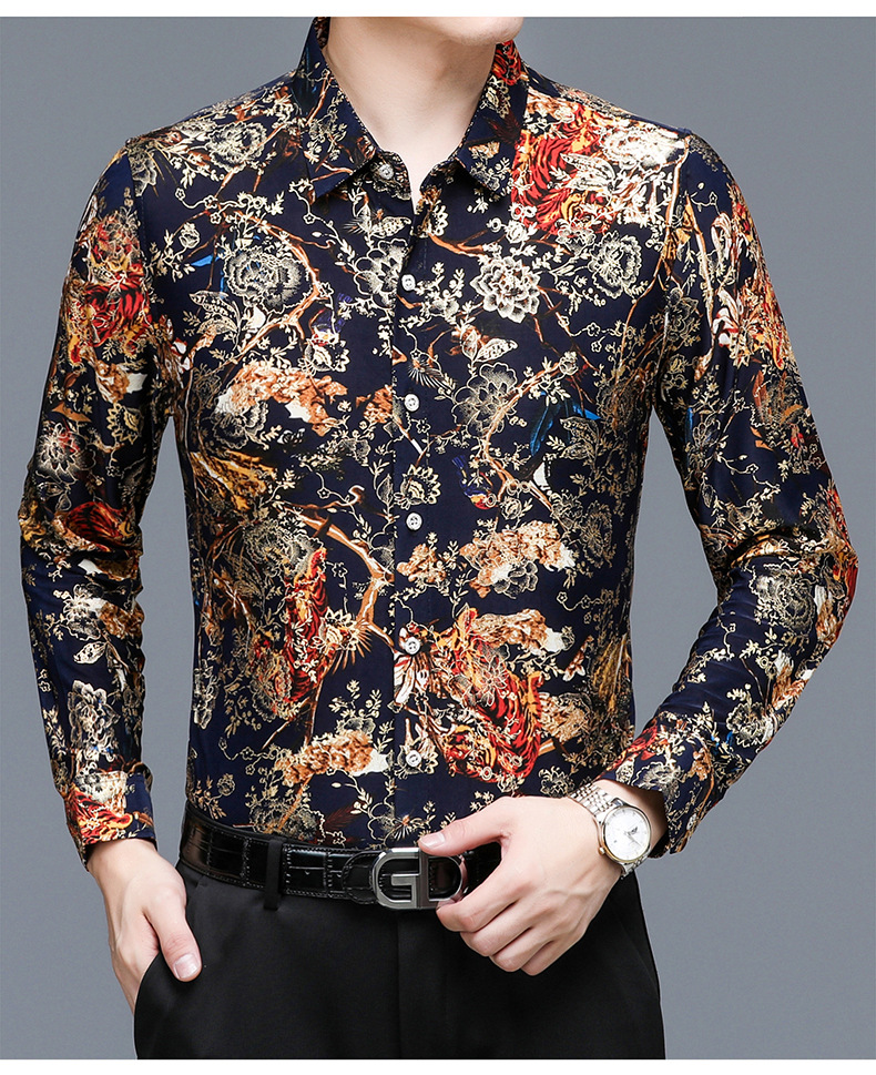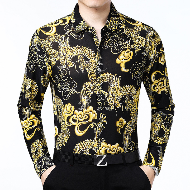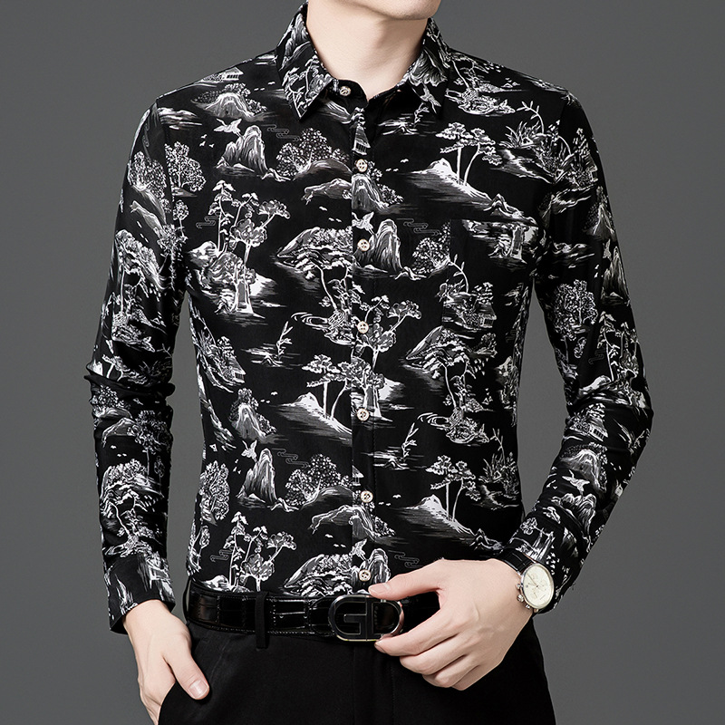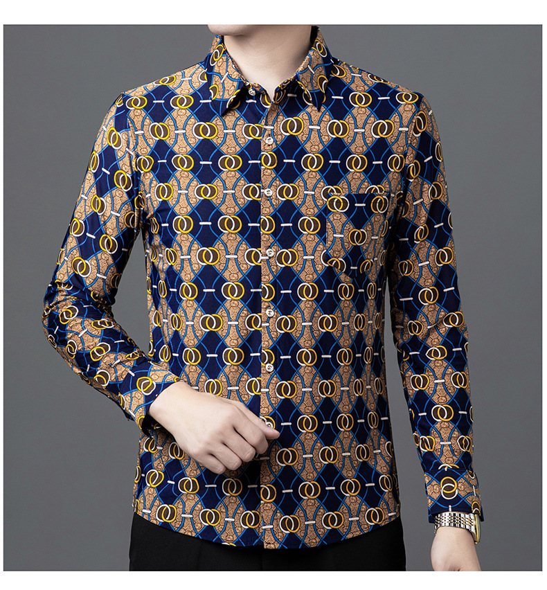 봄과 가을 브론징 남성용 긴팔 스트레치 셔츠 캐주얼 비 다림질 중년 아빠 옷 남성용 루즈 탑 셔츠스토어 가기