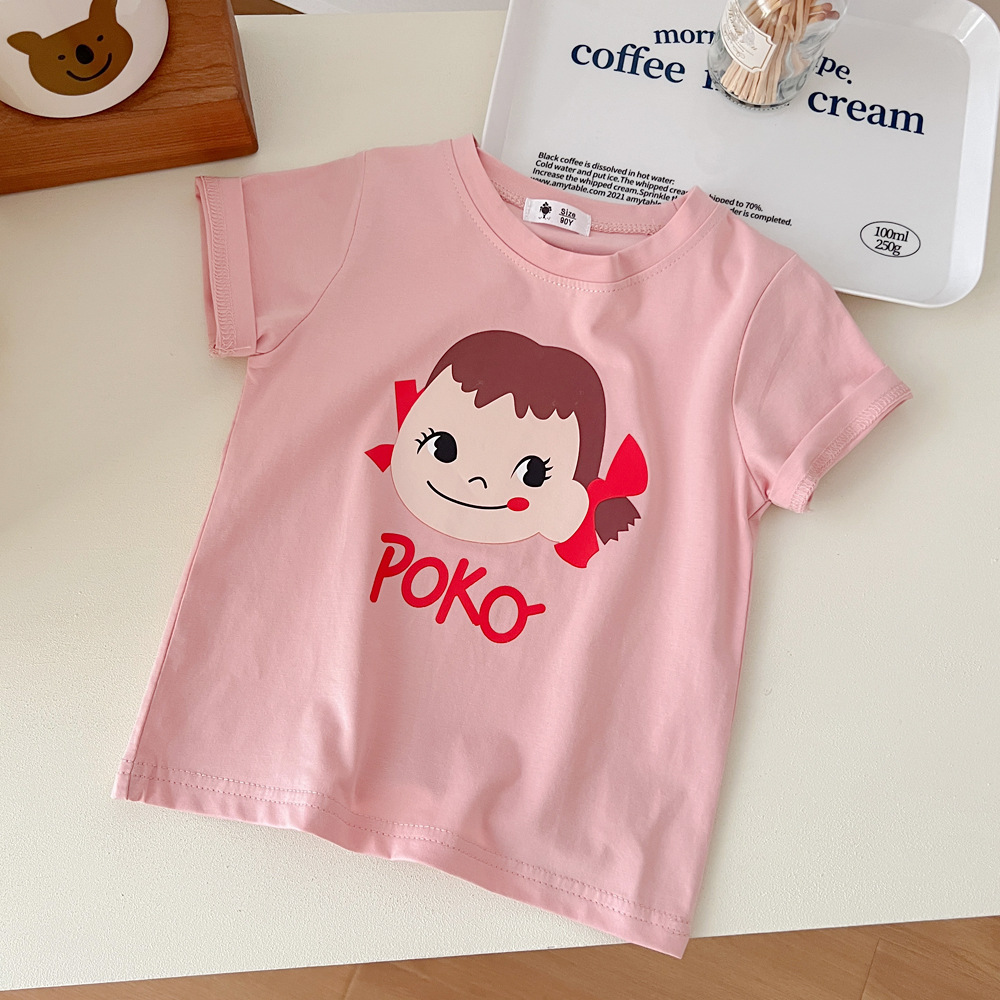 한국 아동복 2023 여름 소녀 세련된 만화 인쇄 티셔츠 소년과 소녀 귀여운 반팔 모든 매치 트렌디 탑스토어 가기