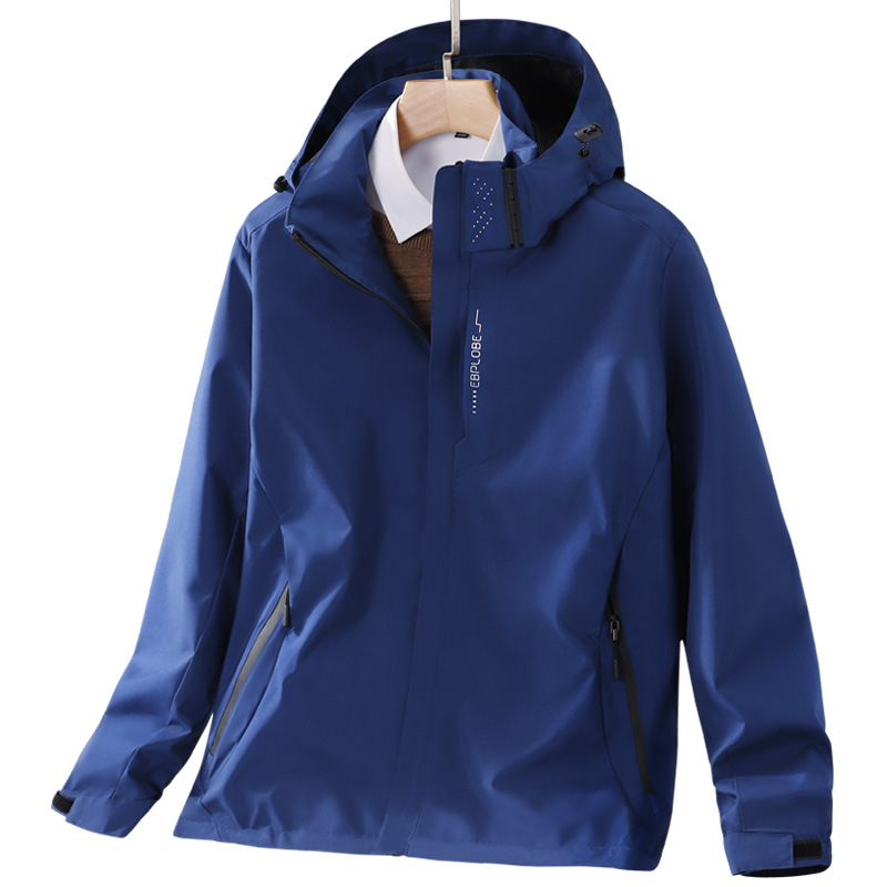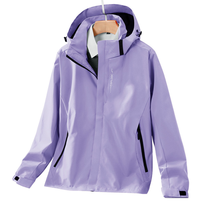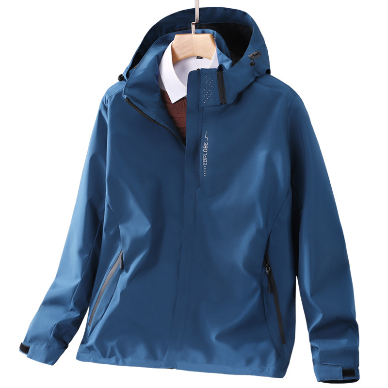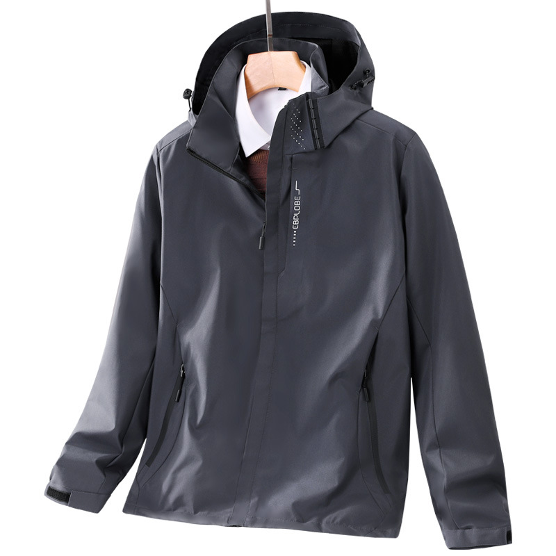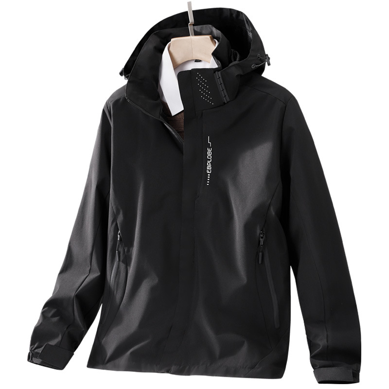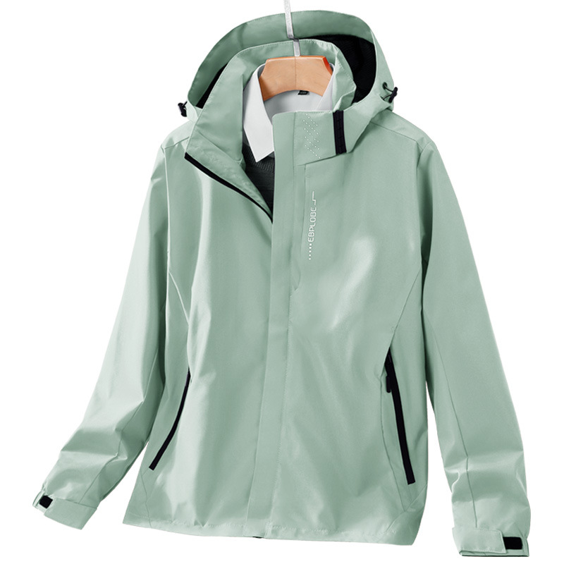 봄과 가을 얇은 재킷 남자의 야외 방풍 후드 등산 세트 여자의 싱글 재킷 코트 세트 인쇄 로고스토어 가기