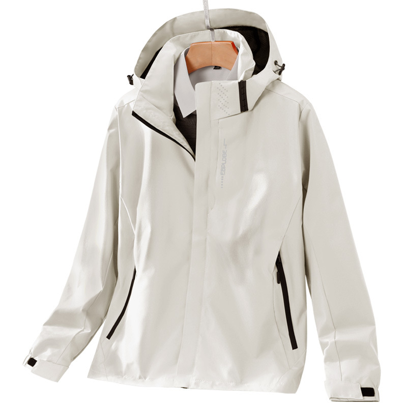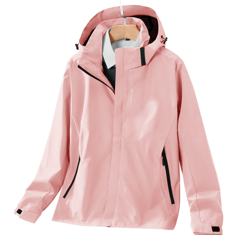봄과 가을 얇은 재킷 남자의 야외 방풍 후드 등산 세트 여자의 싱글 재킷 코트 세트 인쇄 로고