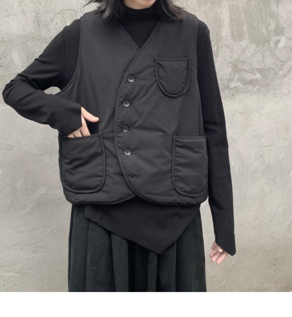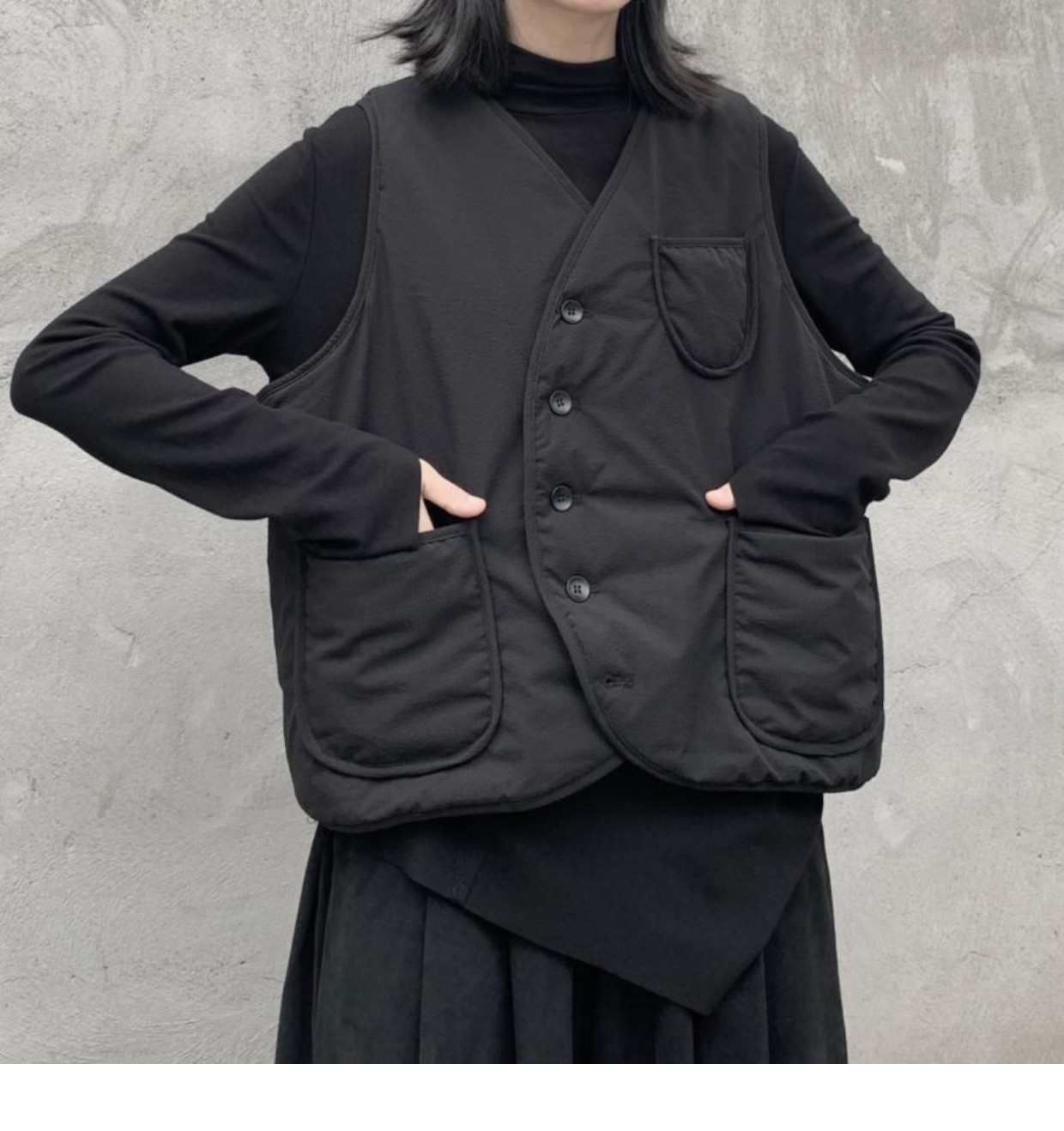 야마모토 디아블로 스타일 독특한 퀼트 조끼 여성의 가을과 겨울 새로운 느슨한 조끼 틈새 디자인 감각 조끼 재킷 유행
