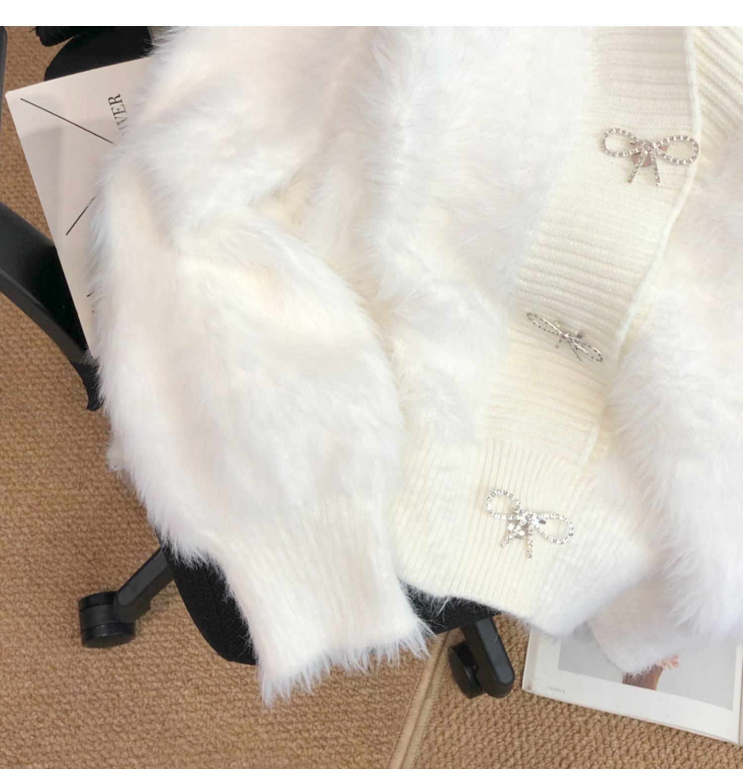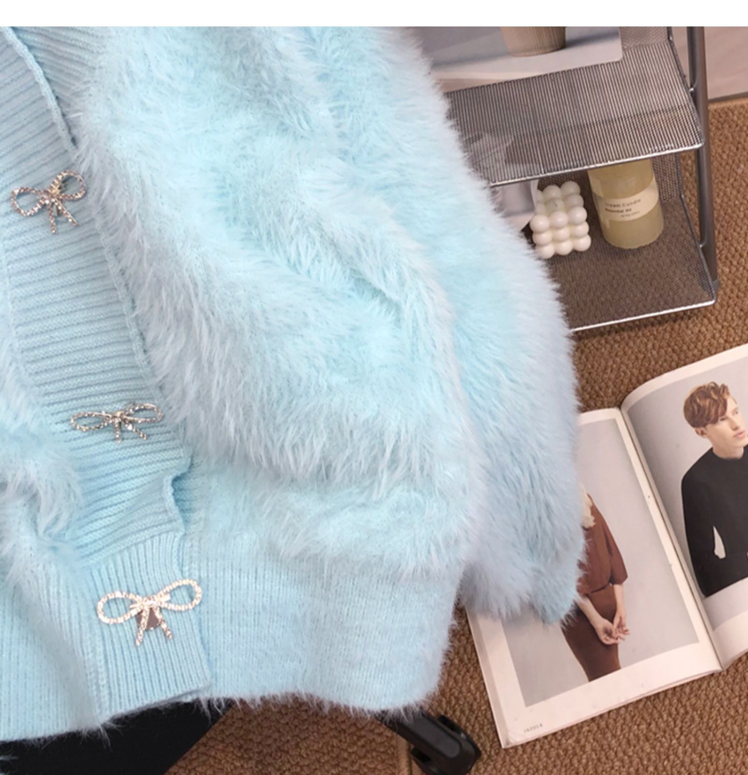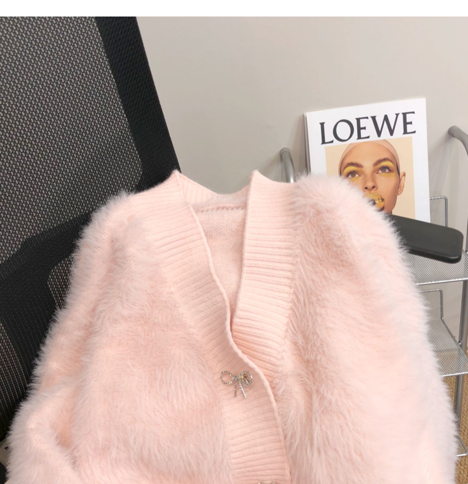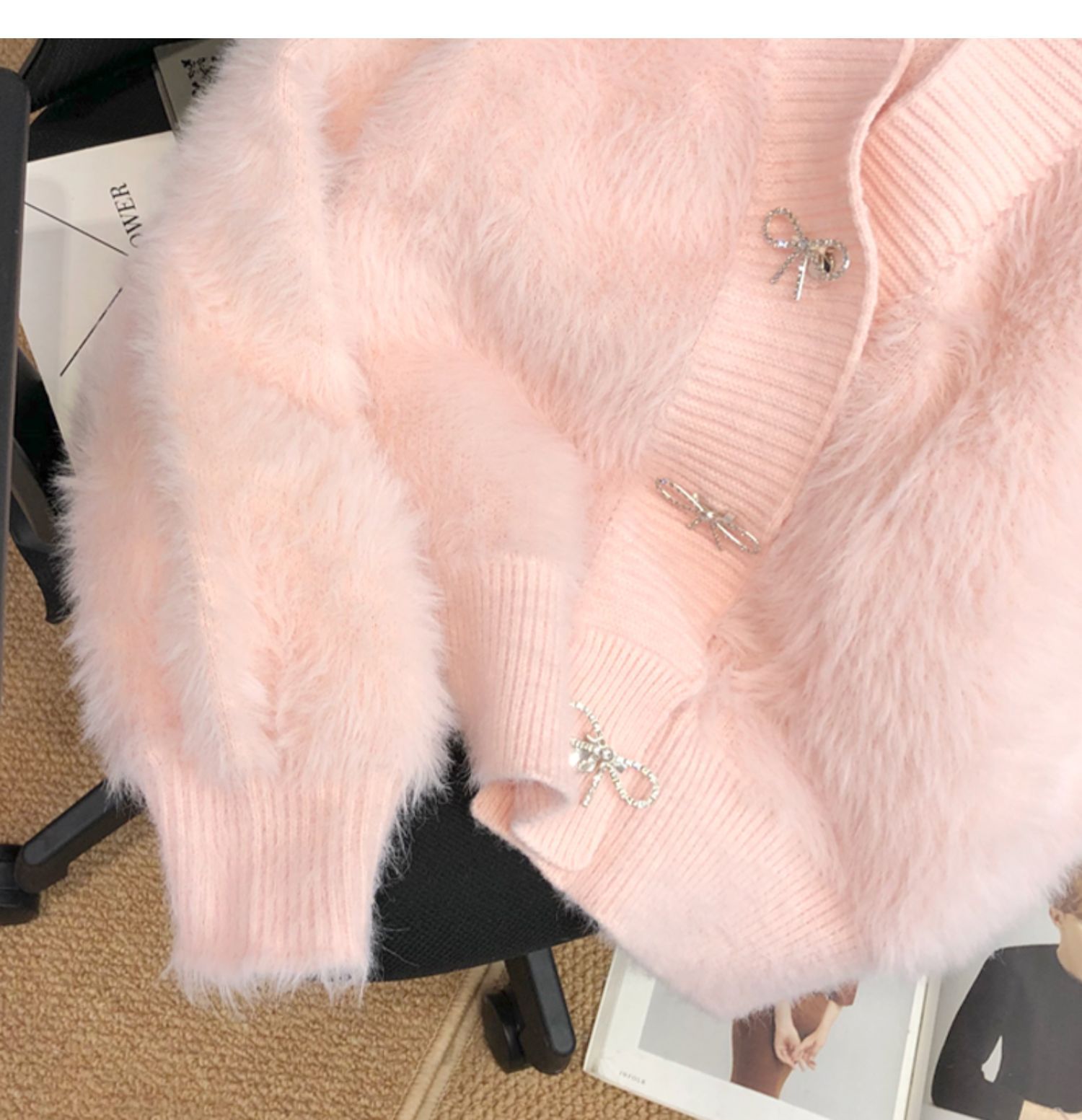 고급 밍크 벨벳 핑크 스웨터 코트 여성의 가을과 겨울 새로운 두꺼운 느슨한 우아한 V-넥 니트 가디건스토어 가기