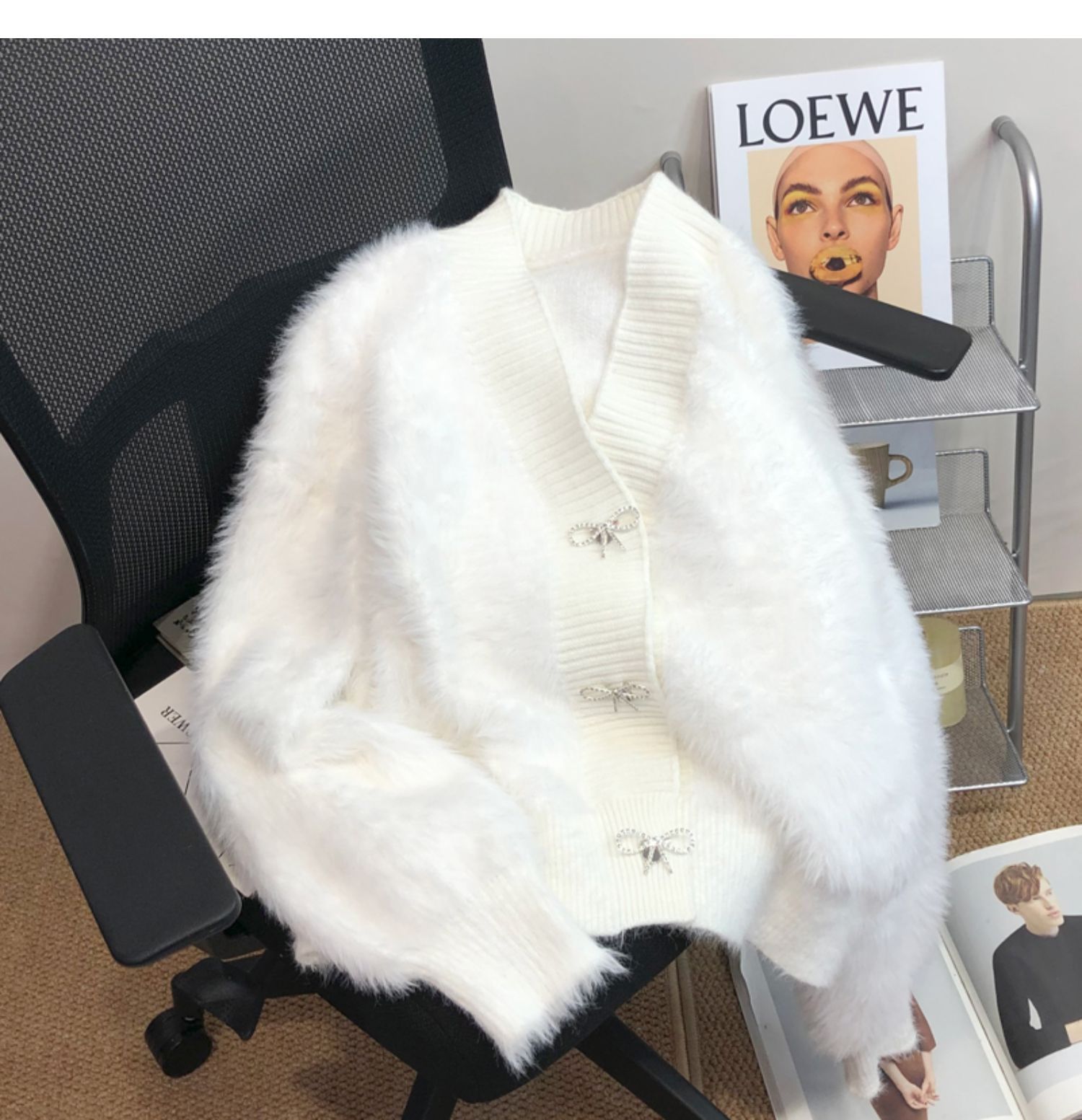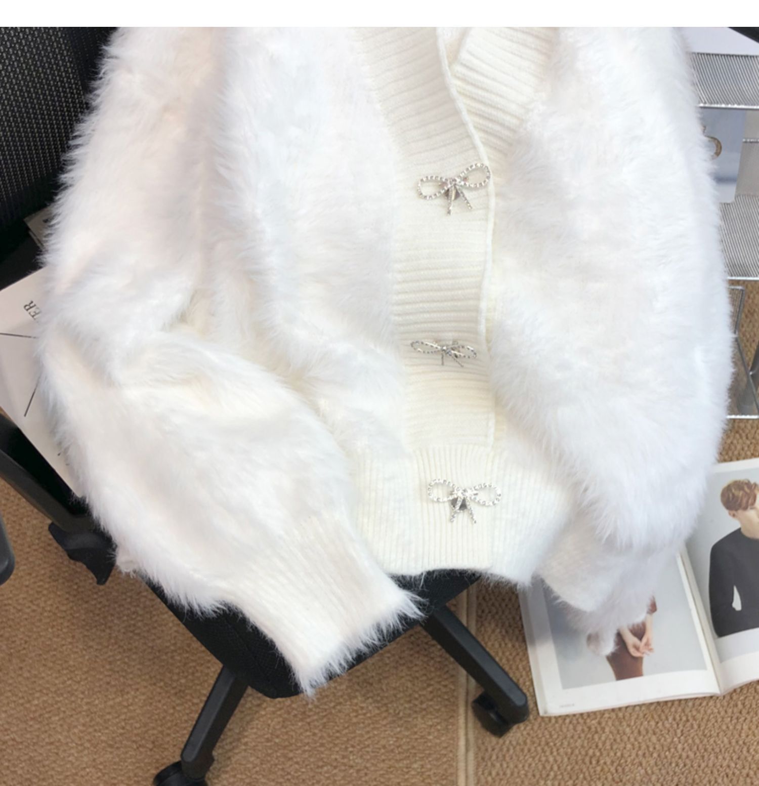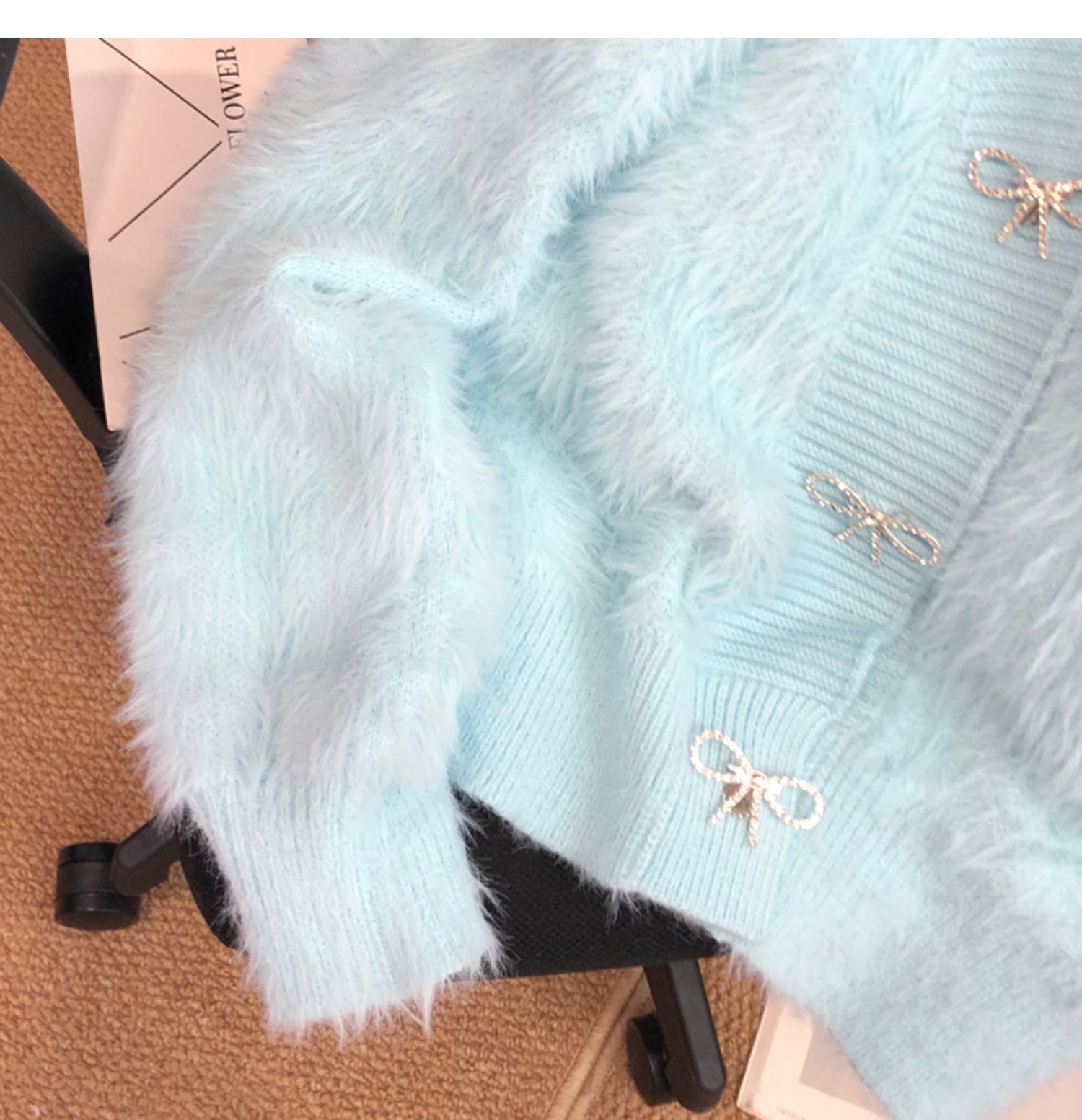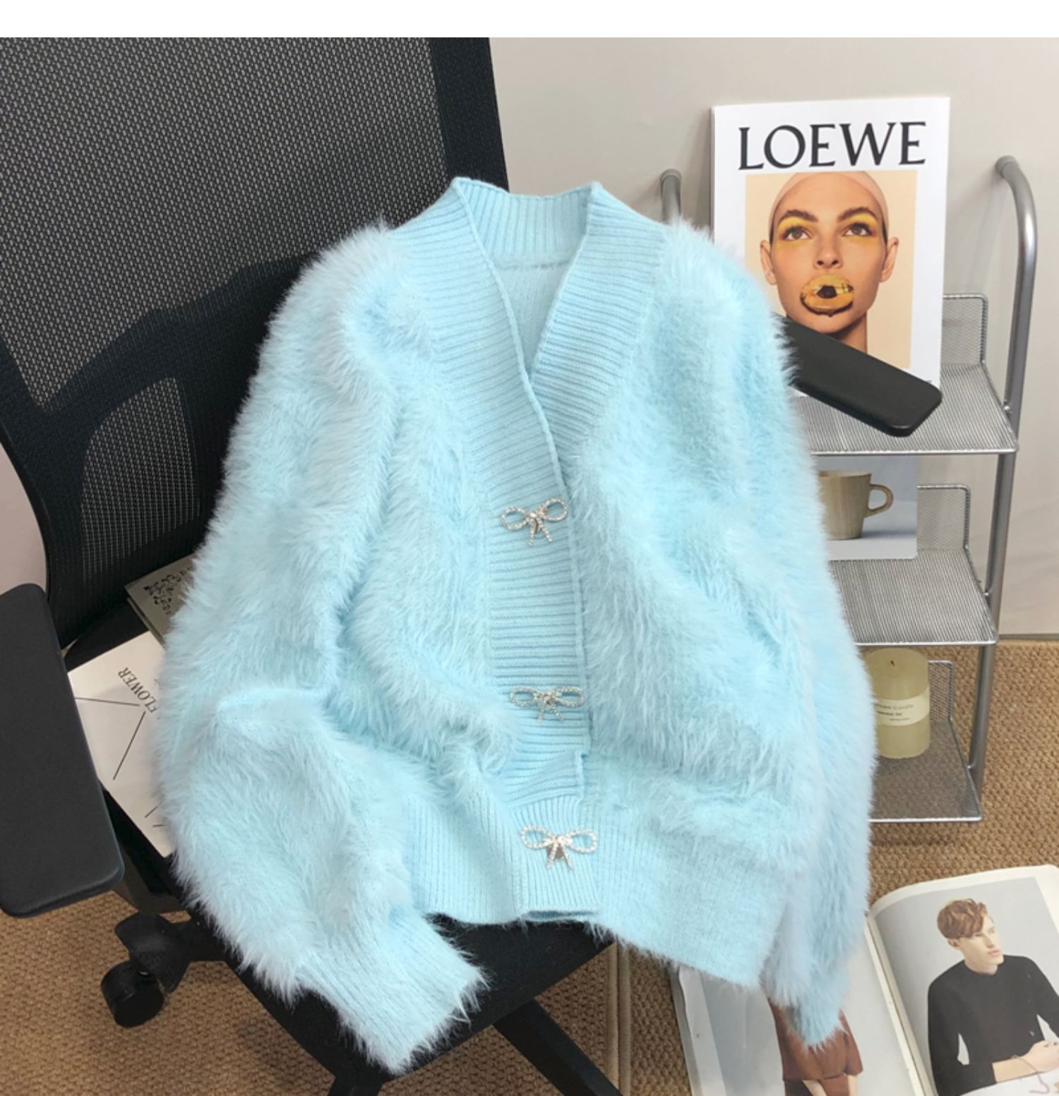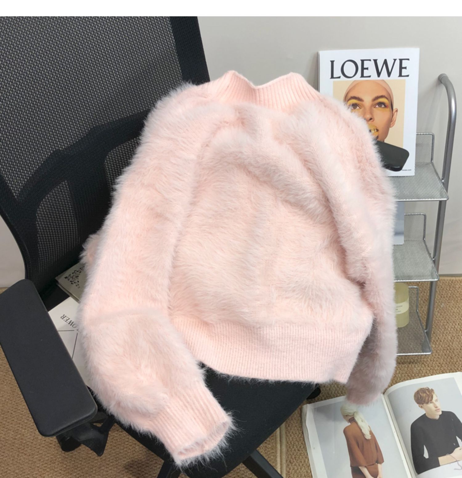 고급 밍크 벨벳 핑크 스웨터 코트 여성의 가을과 겨울 새로운 두꺼운 느슨한 우아한 V-넥 니트 가디건스토어 가기