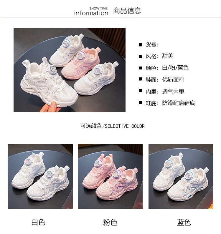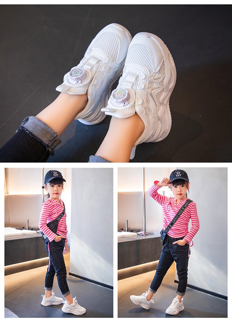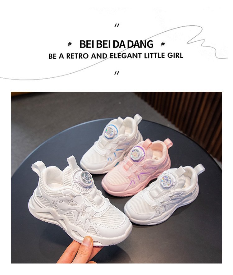 여아 운동화 2025 봄 가을 아동 메쉬 화이트 슈즈 중대형 아동 회전 버튼 소프트솔 남아 러닝화스토어 가기