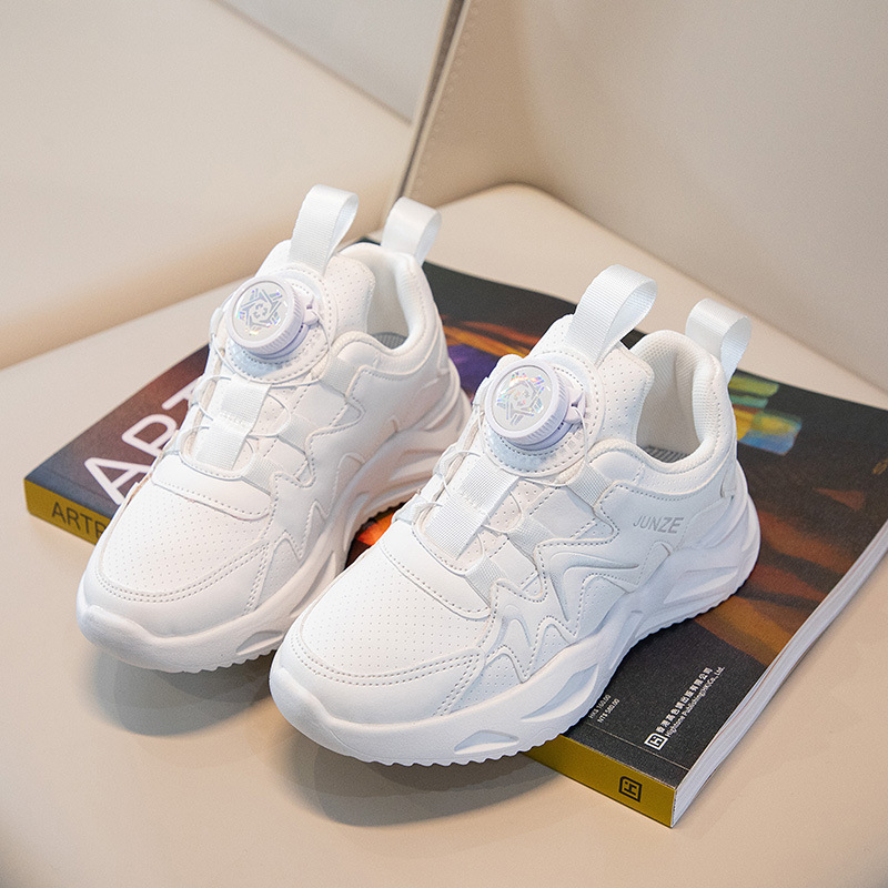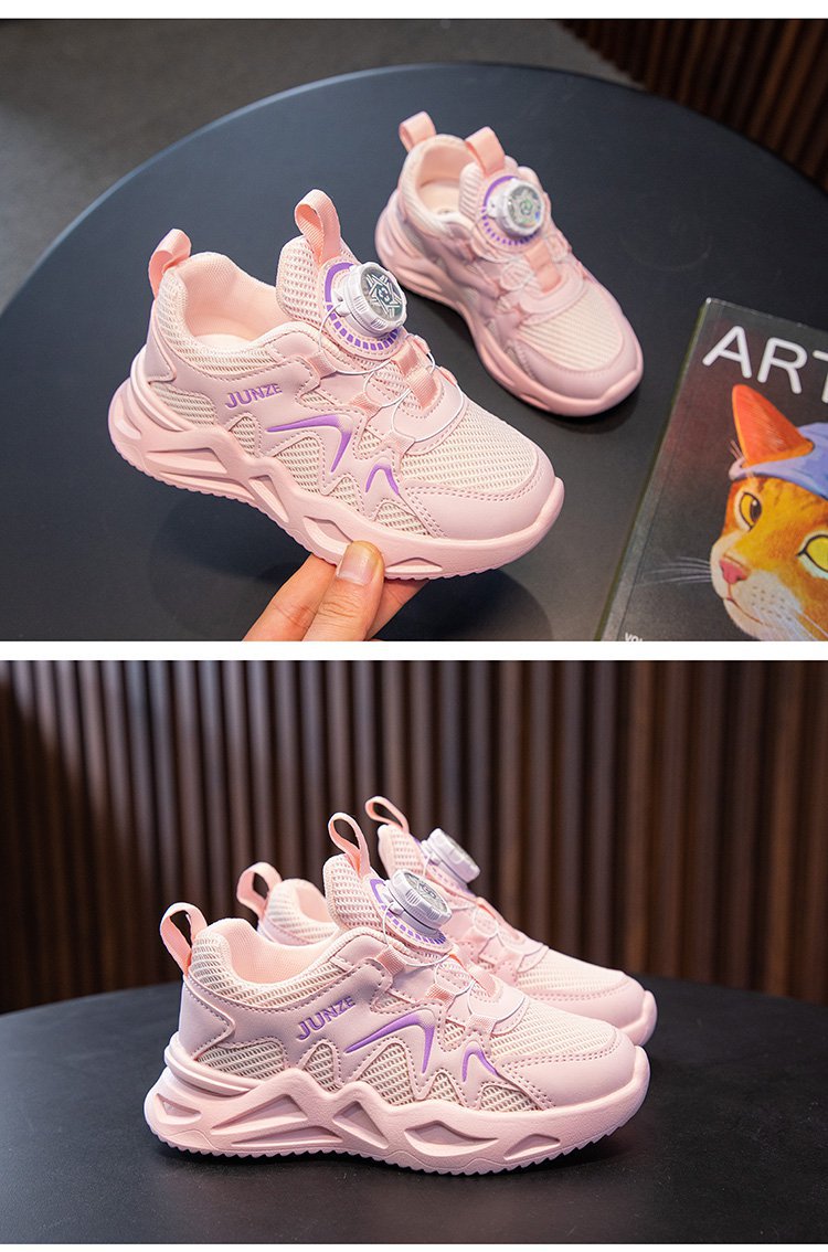 여아 운동화 2025 봄 가을 아동 메쉬 화이트 슈즈 중대형 아동 회전 버튼 소프트솔 남아 러닝화