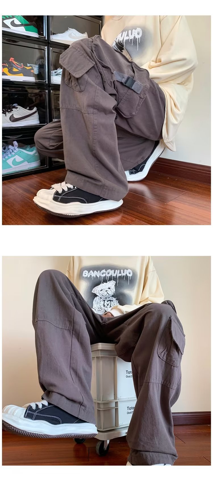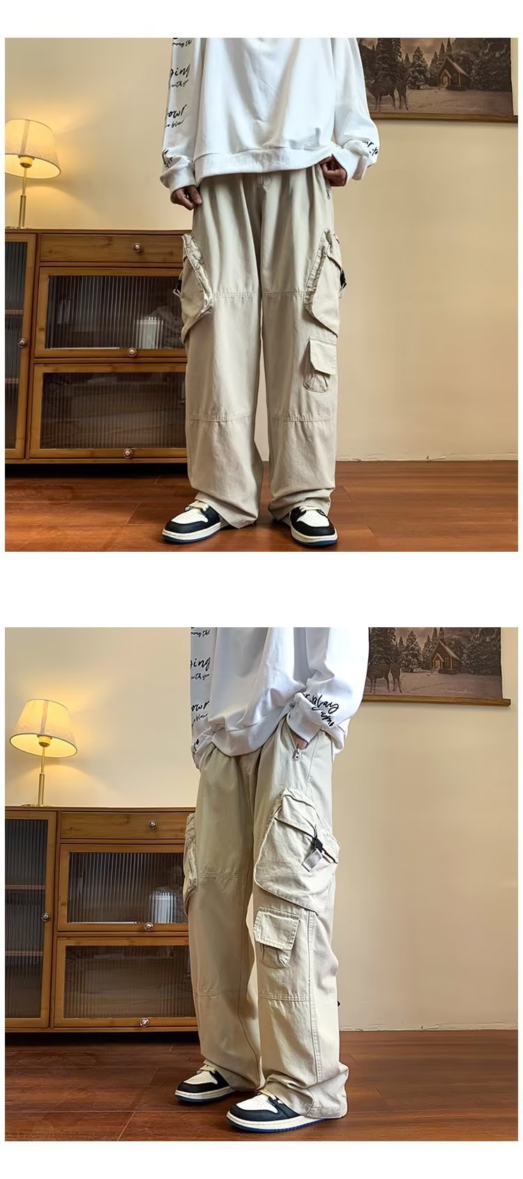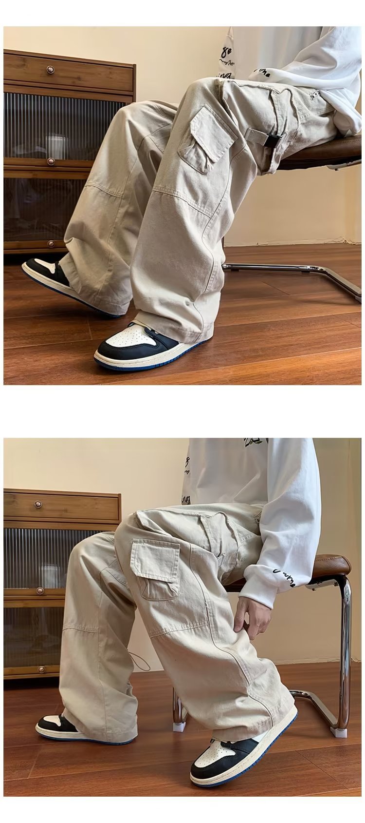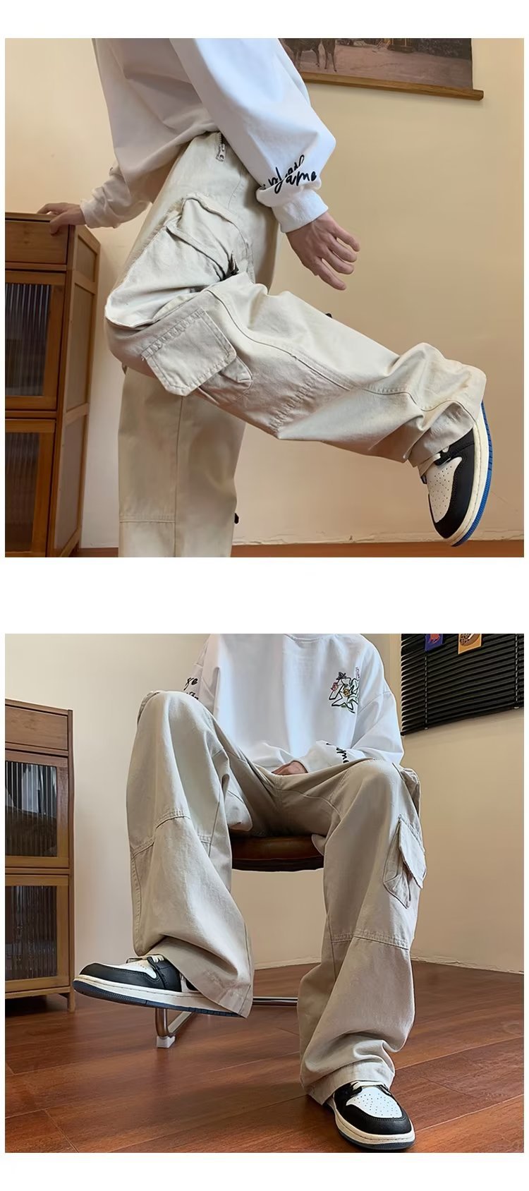 아메리칸 레트로 하이 스트리트 크록 팬츠 남성용 스트레이트 와이드 레그 캐주얼 바지 2023 새로운 패션 트렌디 한 바지스토어 가기